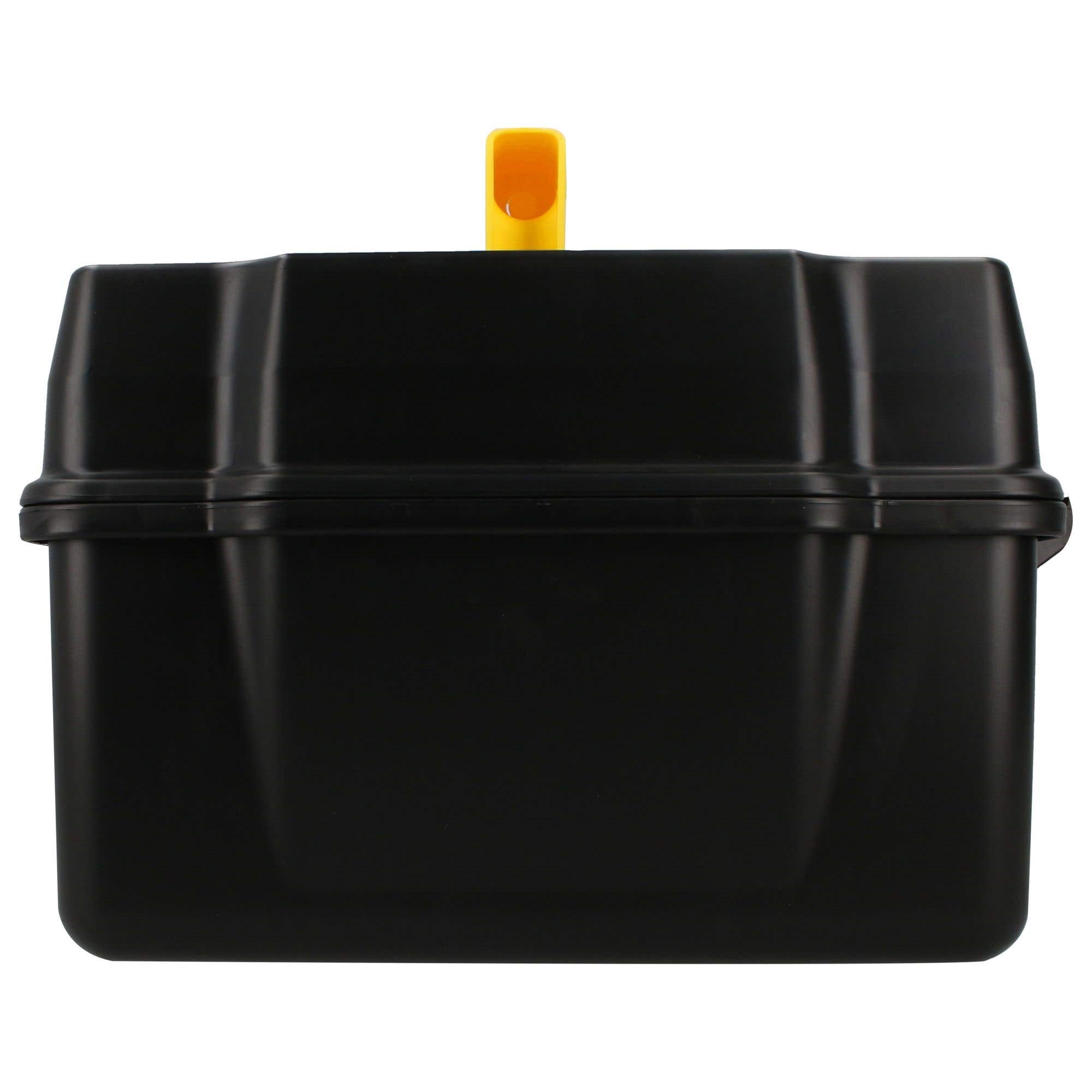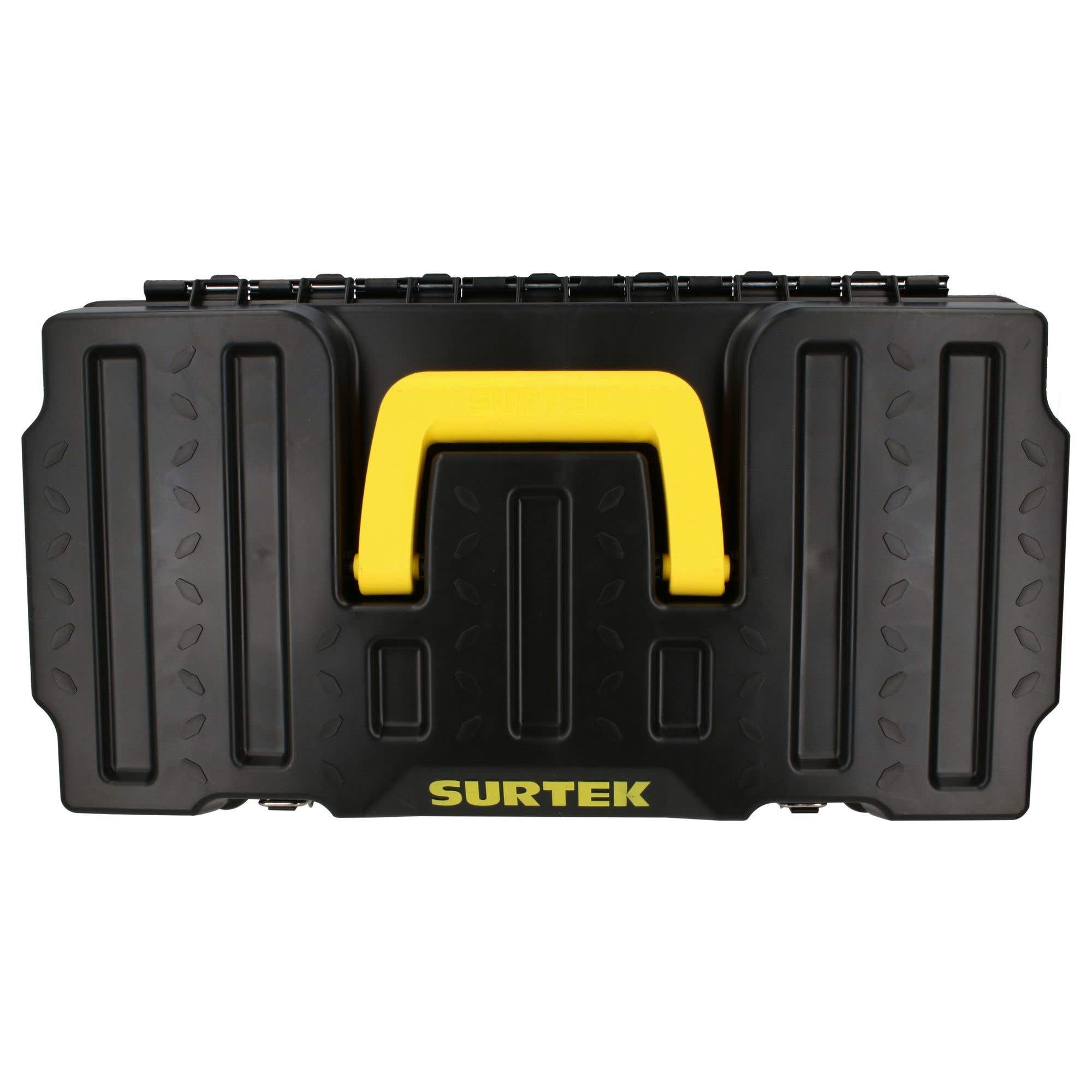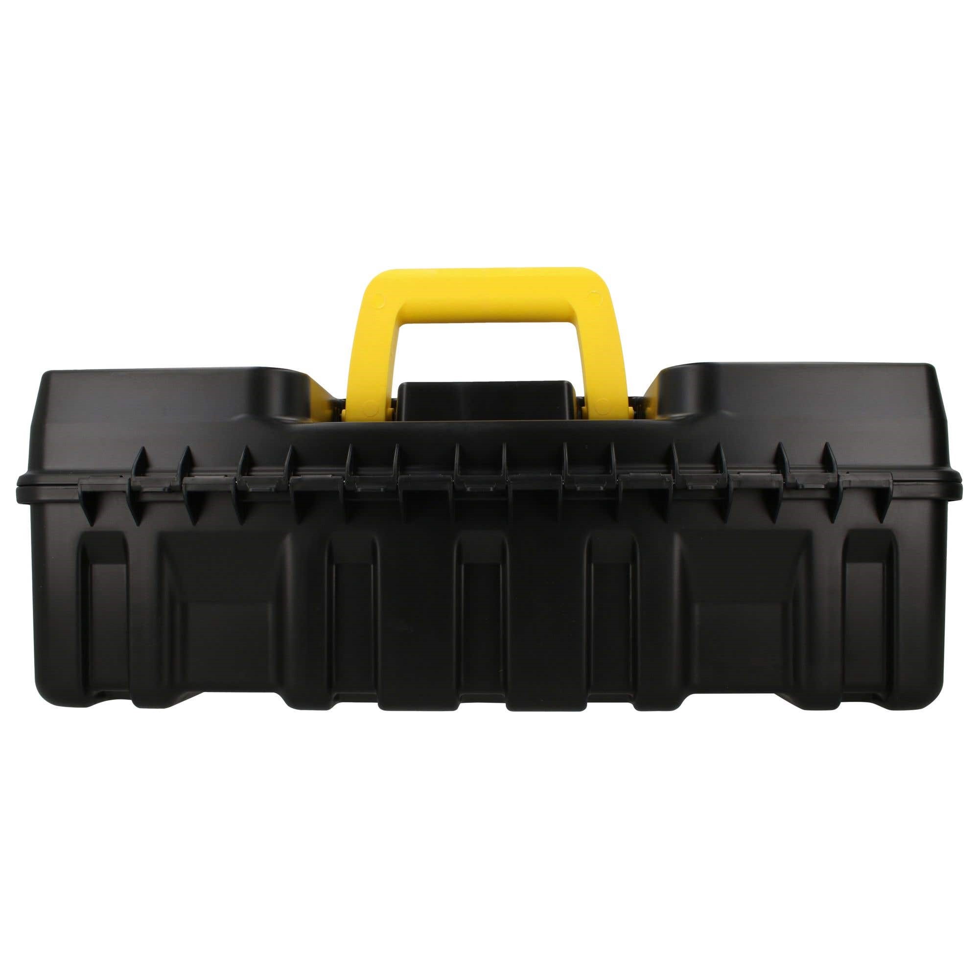 Plástico de alta resistencia Broches metálicos con porta candado Cuerpo con asas laterales Resistentes costillas de refuerzo Tapa de 110° de apertura Bisagra corrida Tapa antiderrapante que permite pararse sobre ella Adecuada para guardar herramientas con mango largo No incluye charola