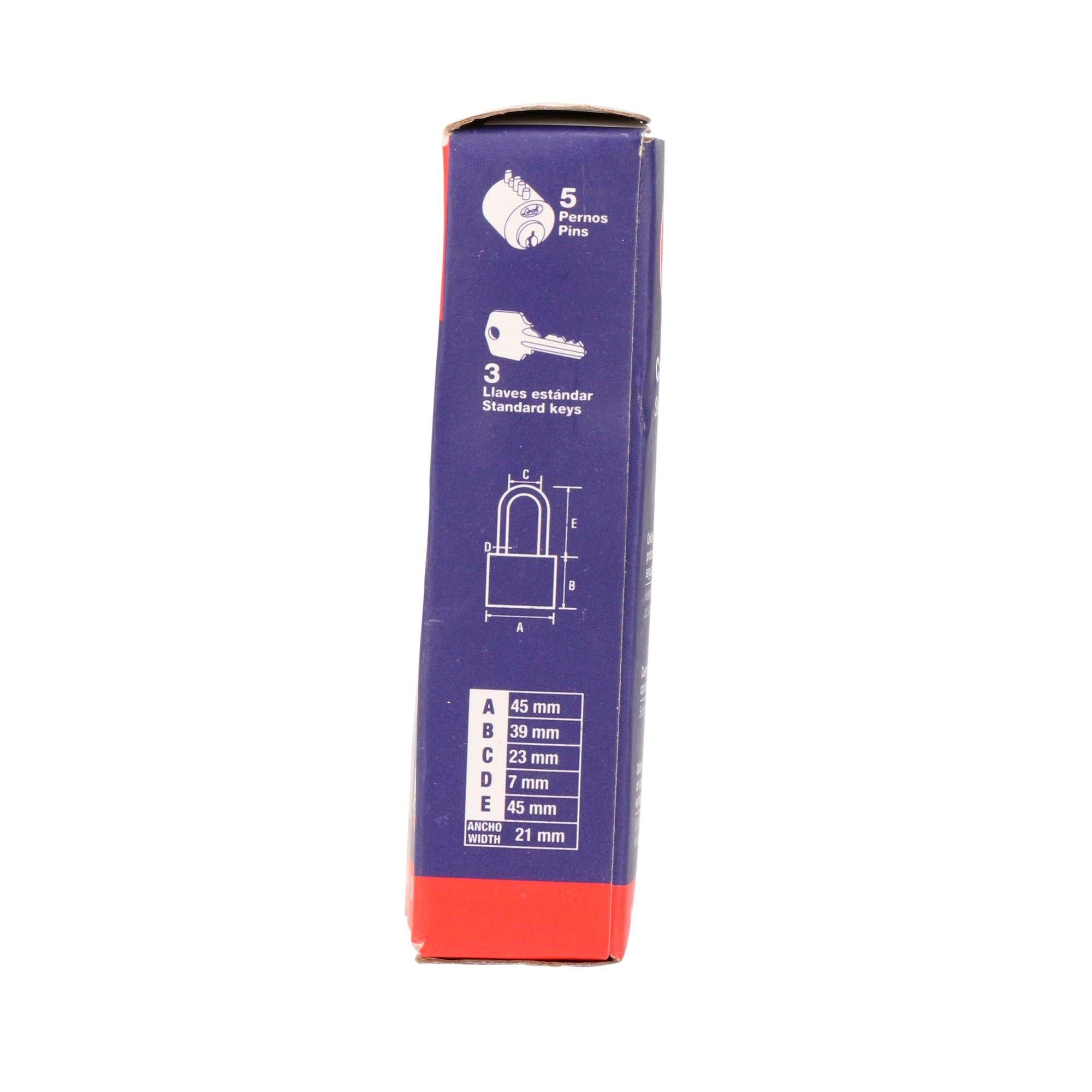 CANDADO DE ACERO LARGO LLAVE ESTANDAR 45MM EN CAJA LOCK