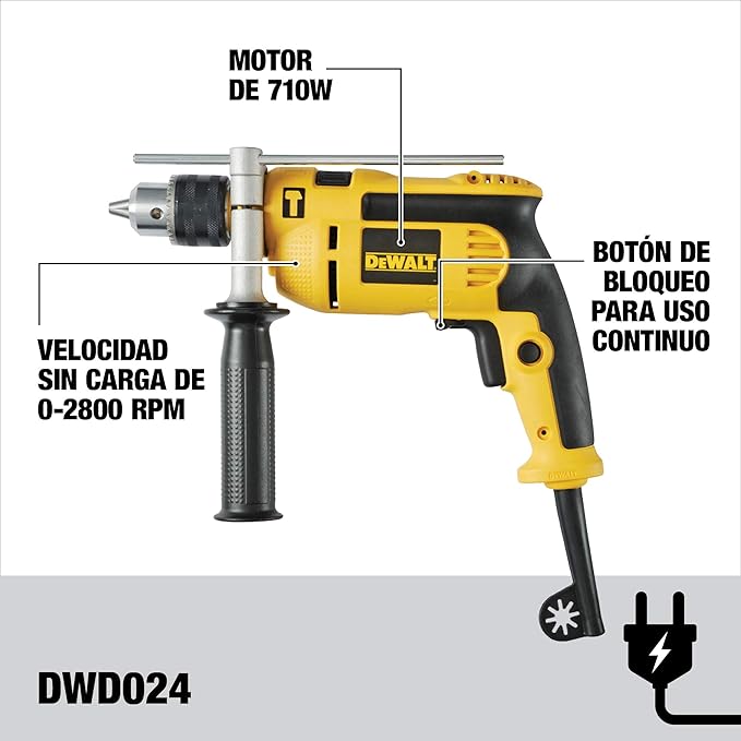 Botón de uso continuo, permite mantener la unidad en una sola velocidad continua.Mango recubierto con goma, para mayor comodidad.Interruptor con selector de reversa, para mayor comodidad al usar la herramienta.Mango lateral texturizado, con suave agarre para mayor comodidad y control.Protector de cable con sujetador de llave, para una mayor conveniencia y durabilidad.