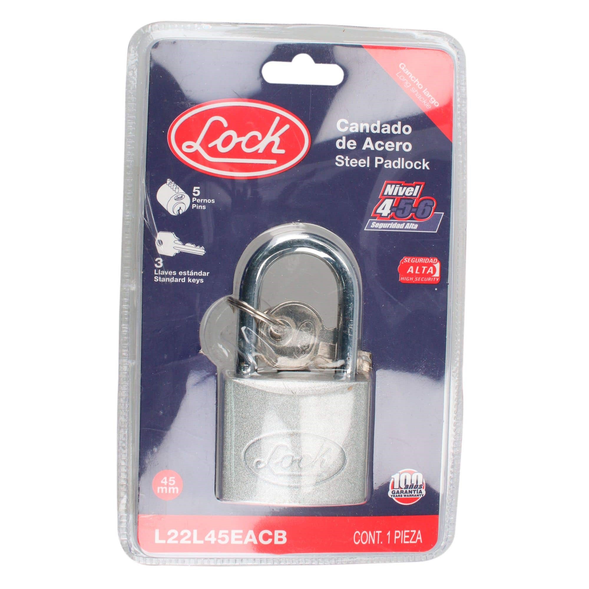CANDADO DE ACERO LARGO LLAVE ESTANDAR 45MM LOCK