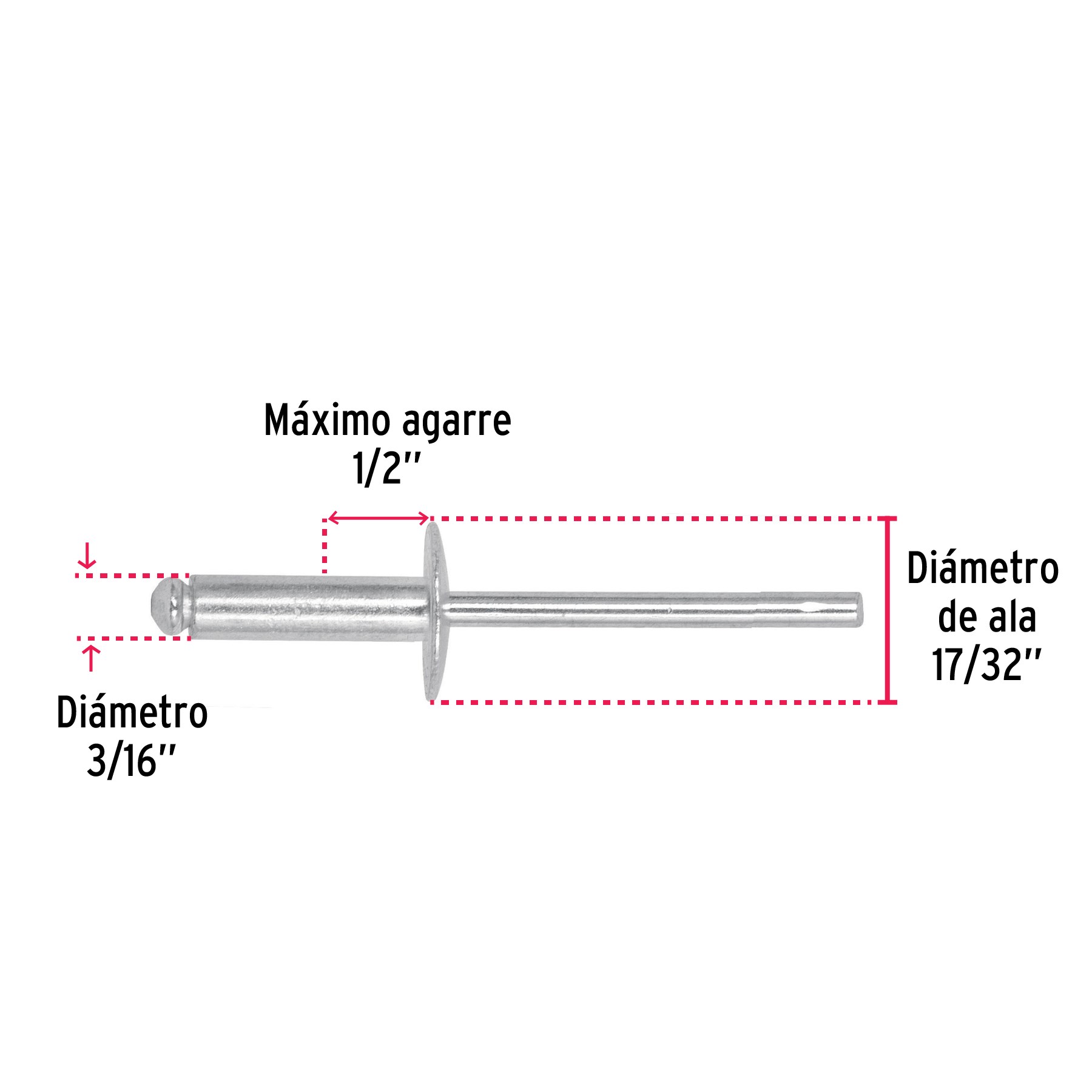 BOLSA CON 50 REMACHES DE 3/16" X 1/2" DE ALUMINIO CON MEDIDA DE ALA DE 17/32" FIERO