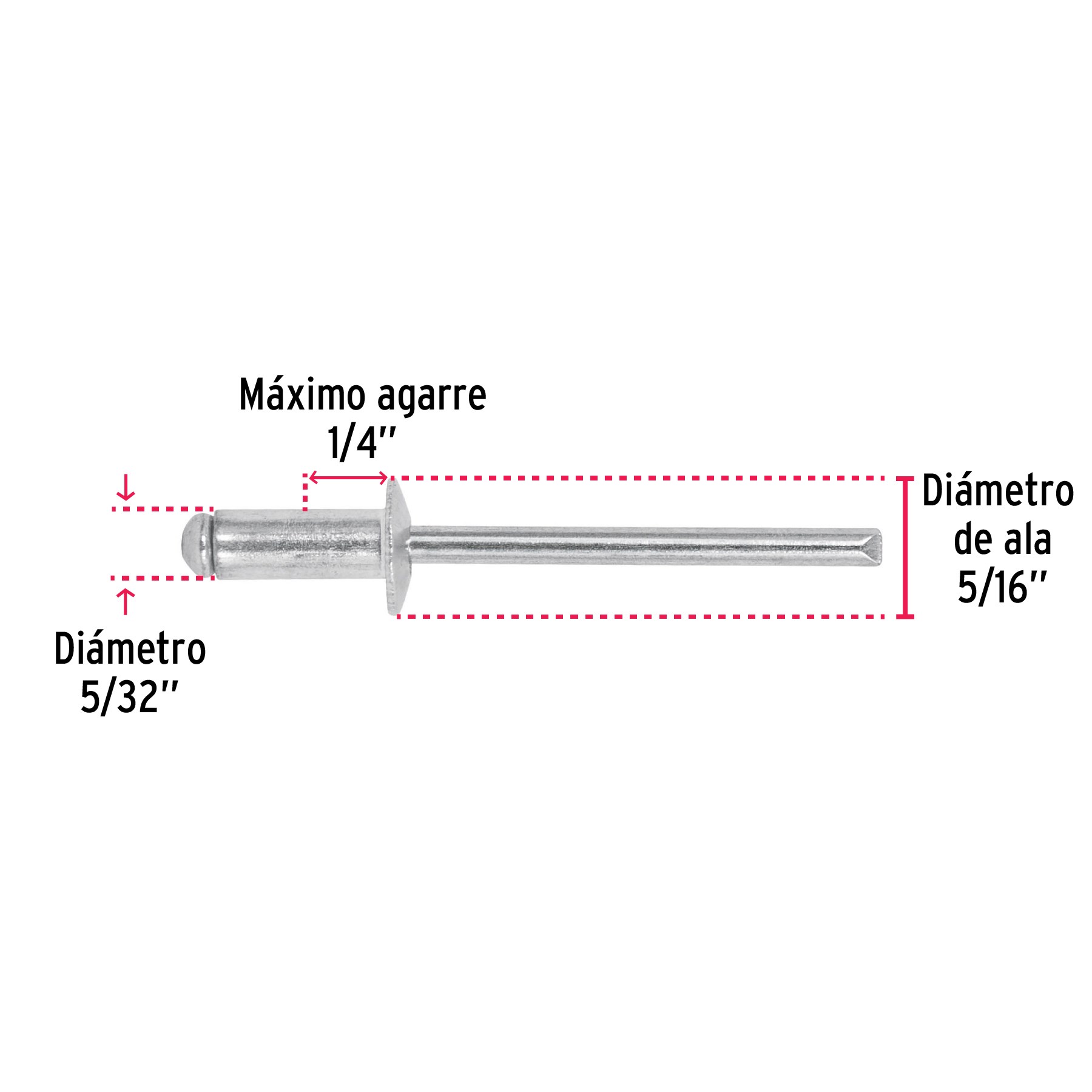 BOLSA CON 50 REMACHES DE 5/32" X 1/4" DE ALUMINIO CON MEDIDA DE ALA 5/16" FIERO