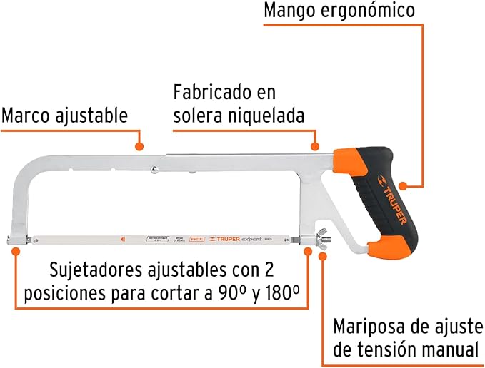 DescripciónMango ergonómico antiderrapante fabricado en polipropileno. Dos posiciones de segueta 90° y 180°. Solera de acero niquelado ajustable a 8 1/2", 10" y 12" (22, 25 y 30 cm). Mariposa de ajuste de tensión.Comentarios0 Mango ergonómico antiderrapante fabricado en polipropileno. Dos posiciones de segueta 90° y 180°. Solera de acero niquelado ajustable a 8 1/2", 10" y 12" (22, 25 y 30 cm). Mariposa de ajuste de tensión. Escribe una reseña No hay comentarios aún