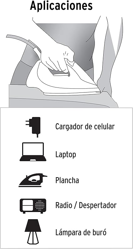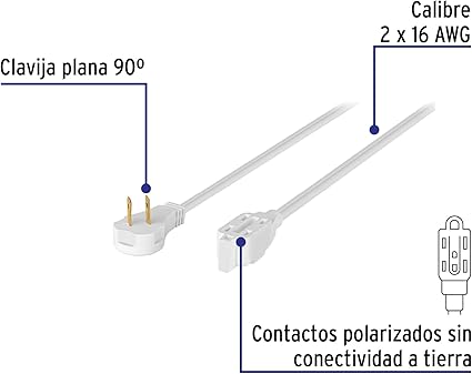 Recubierta de PVC resistente a la propagación de la flama. 3 Contactos polarizados. Su diseño permite conectar clavijas aterrizadas. Clavijas planas de 90°, ideales para espacios reducidos. Uso en interiores.