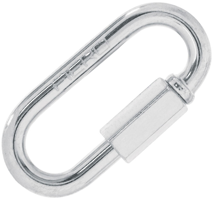 Fabricado en acero al carbono, acabado galvanizado. Resistente a la corrosión. Tornillo de bloqueo roscado. Ideales para arrastre, sujeción y anclaje. Para conexión rápida a cadenas, cables y accesorios.