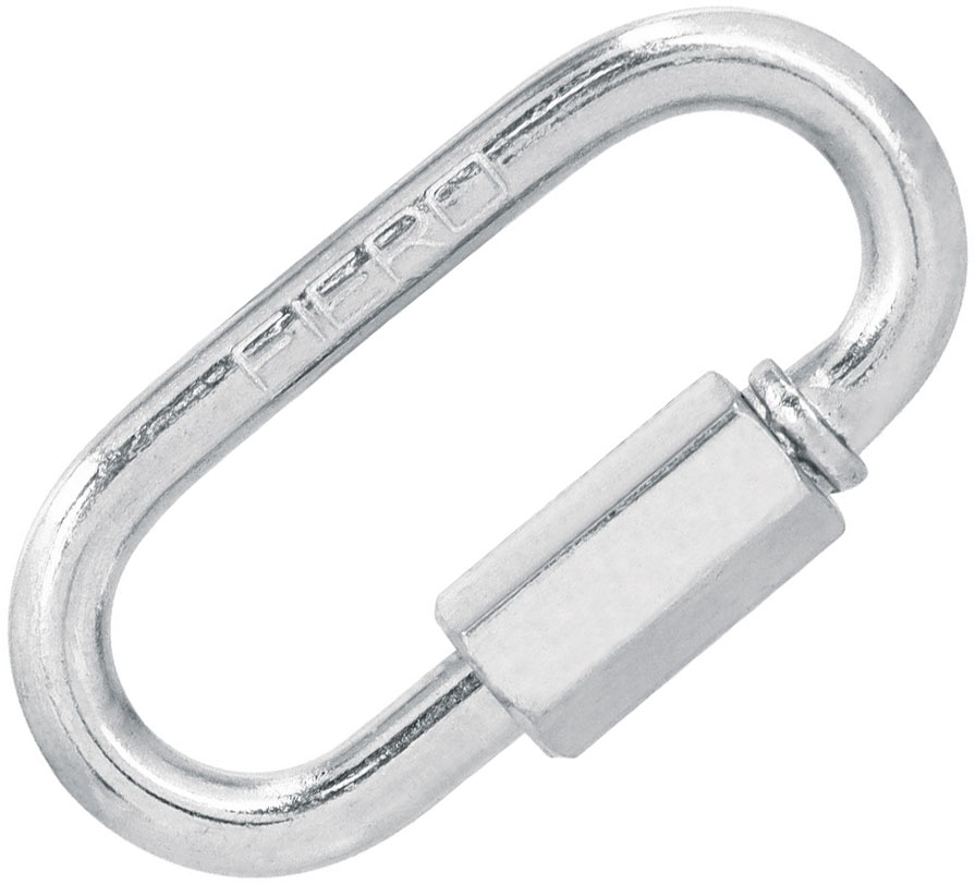 Fabricado en acero al carbono, acabado galvanizado. Resistente a la corrosión. Tornillo de bloqueo roscado. Ideales para arrastre, sujeción y anclaje. Para conexión rápida a cadenas, cables y accesorios.
