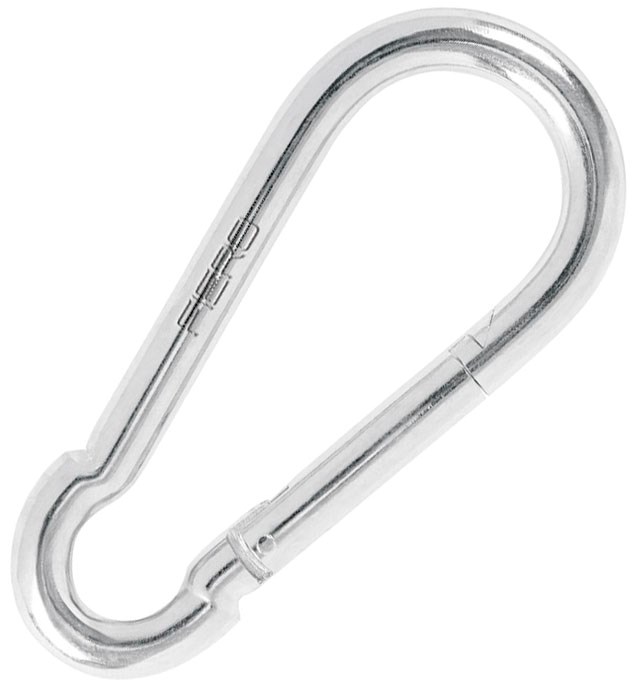 Fabricado en acero al carbono, acabado galvanizado. Cierre fácil y rápido. Resistente a la corrosión. Ideal para conexión instantánea de cables y cuerdas. No exceder límite marcado.