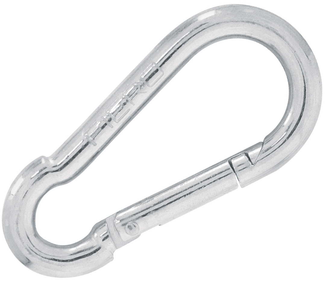 Fabricado en acero al carbono, acabado galvanizado. Cierre fácil y rápido. Resistente a la corrosión. Ideal para conexión instantánea de cables y cuerdas. No exceder límite marcado.