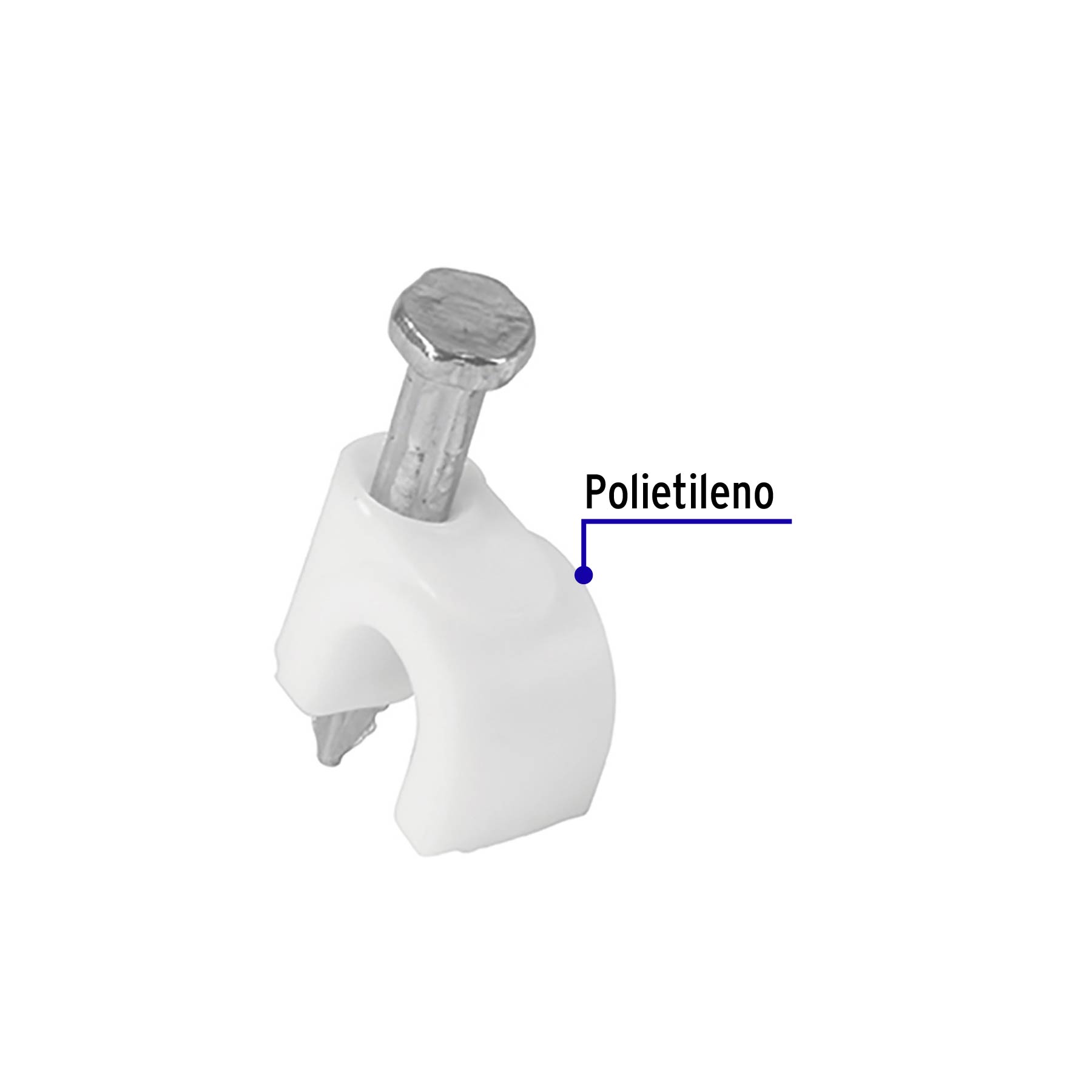 Fabricadas en polietileno. Incluye clavo. Para cables coaxiales o cables redondos.