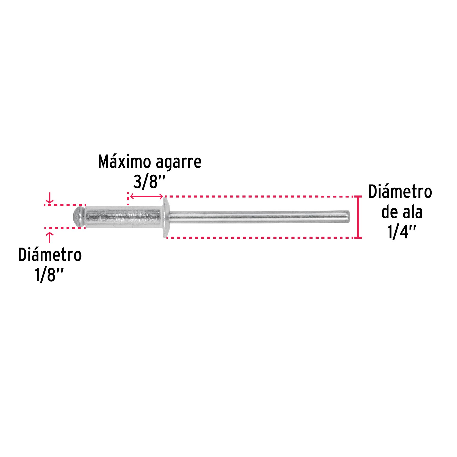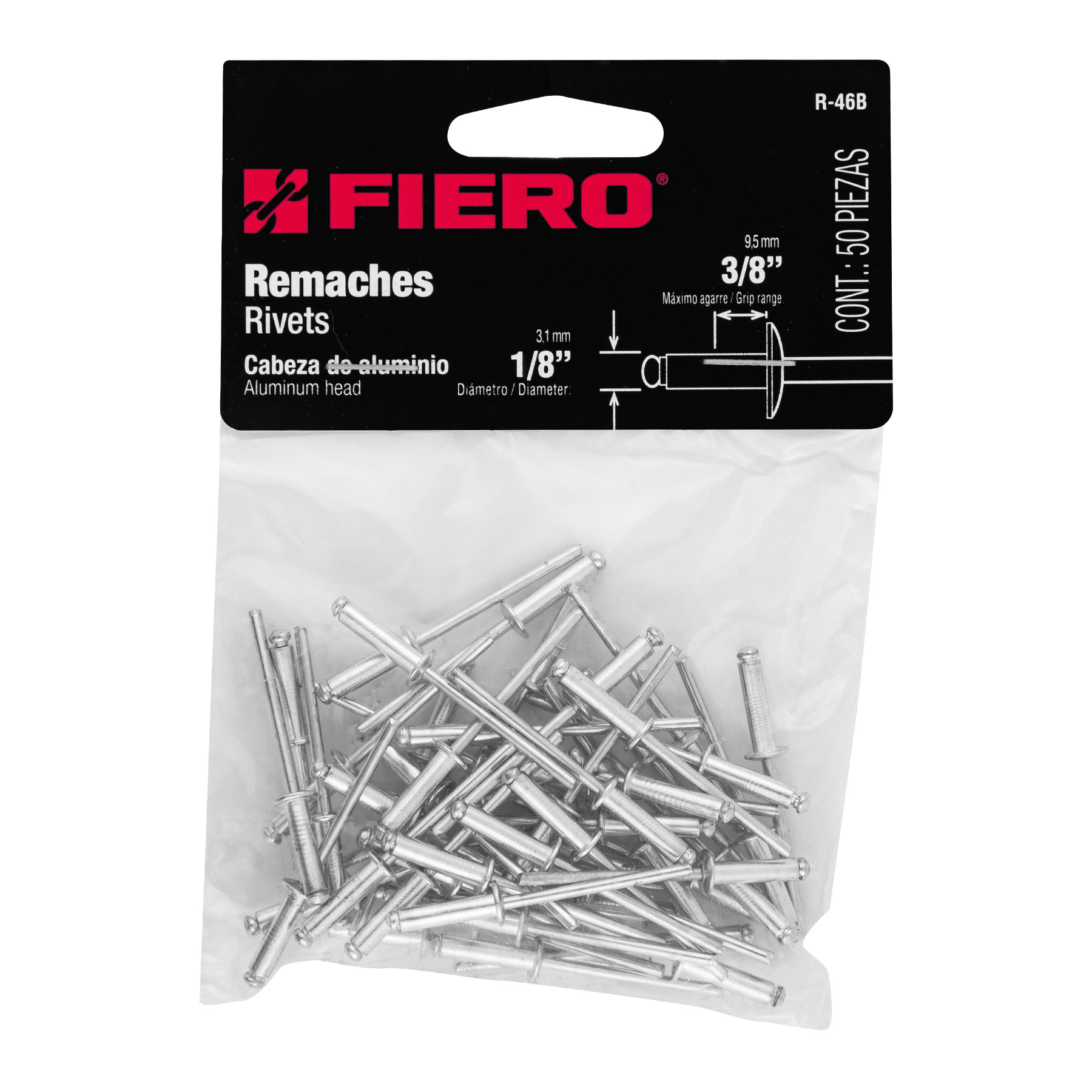 BOLSA CON 50 REMACHES DE 1/8" X 3/8" DE ALUMINIO CON MEDIDA DE ALA DE 1/4" FIERO