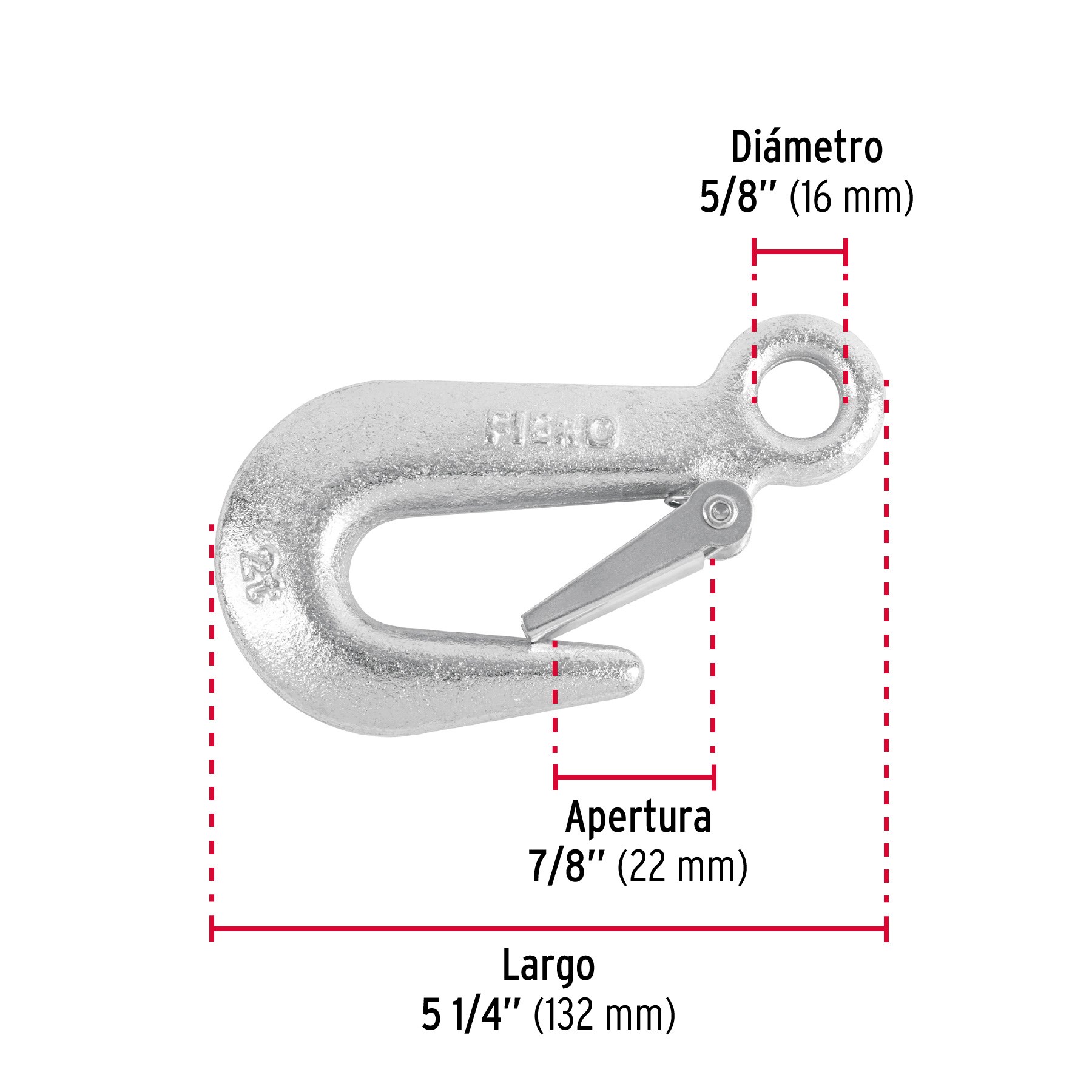 GANCHO ESLINGA DE ACERO FORJADO DE 5/8" PARA CARGA DE 2000 KGS FIERO