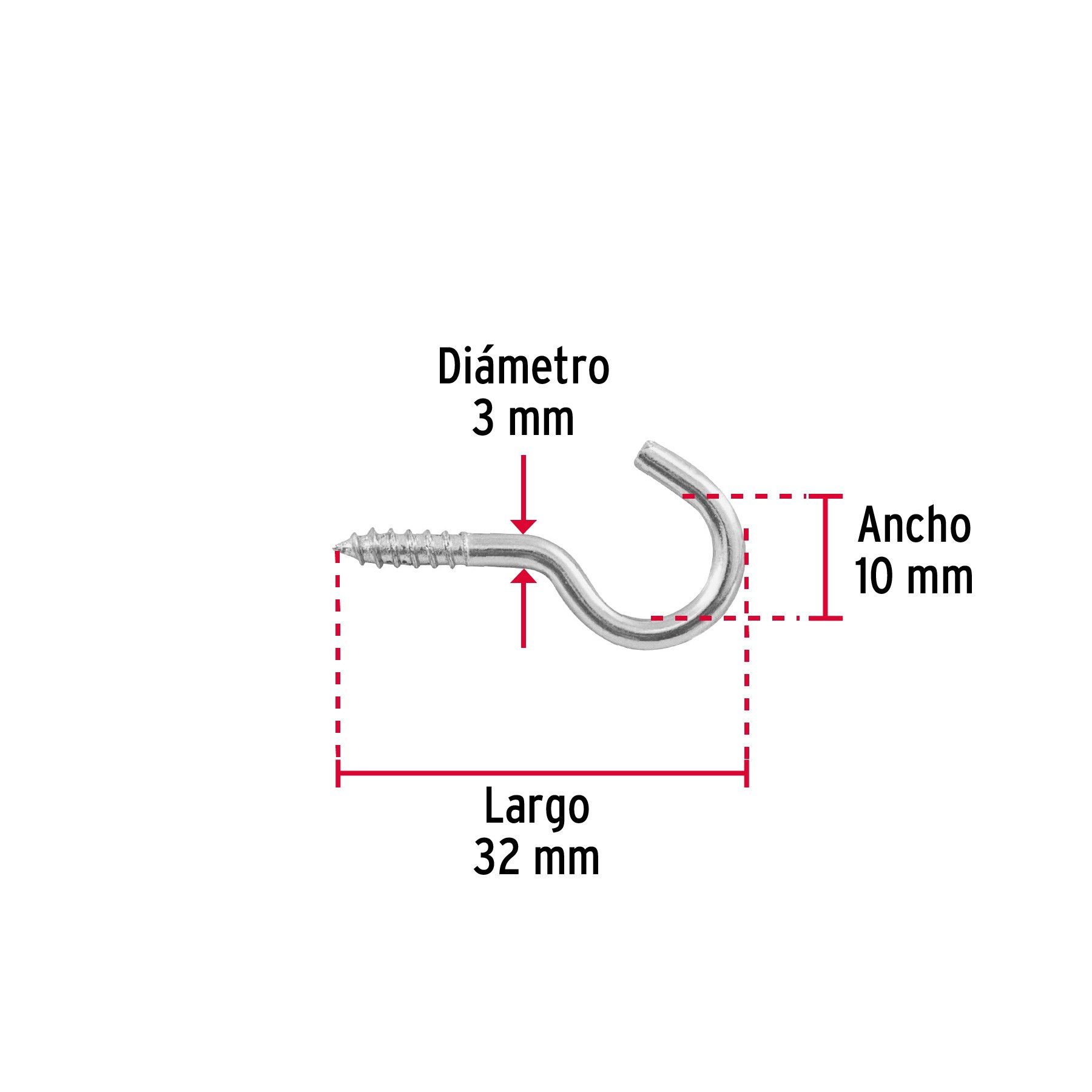 Fabricadas en acero galvanizado resistente a la corrosión. Fácil de instalar. Rosca para madera o taquete. Ideal para sostener objetos colgantes.