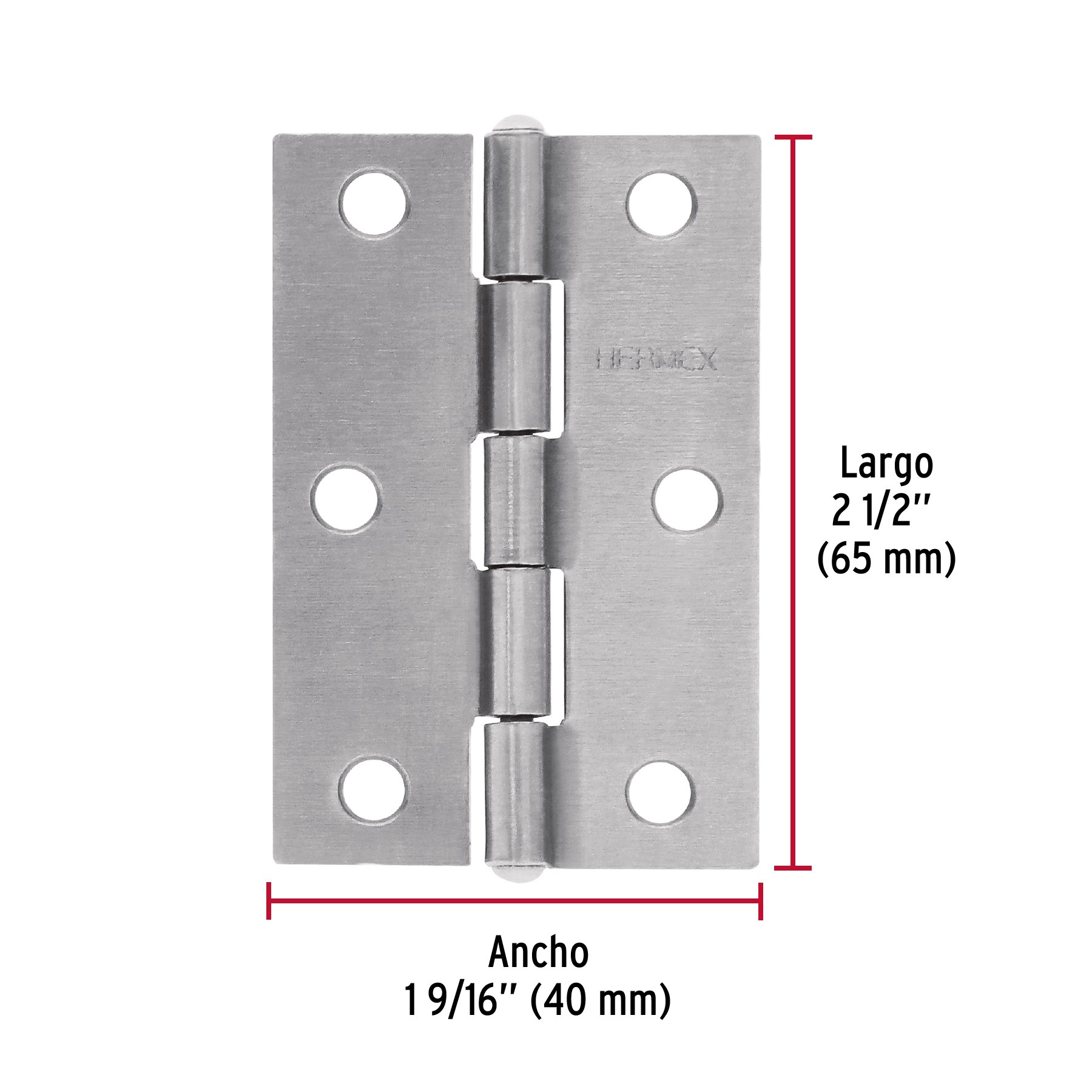 BOLSA CON 2 BISAGRAS RECTANGULARES DE 2-1/2" EN ACERO PULIDO HERMEX