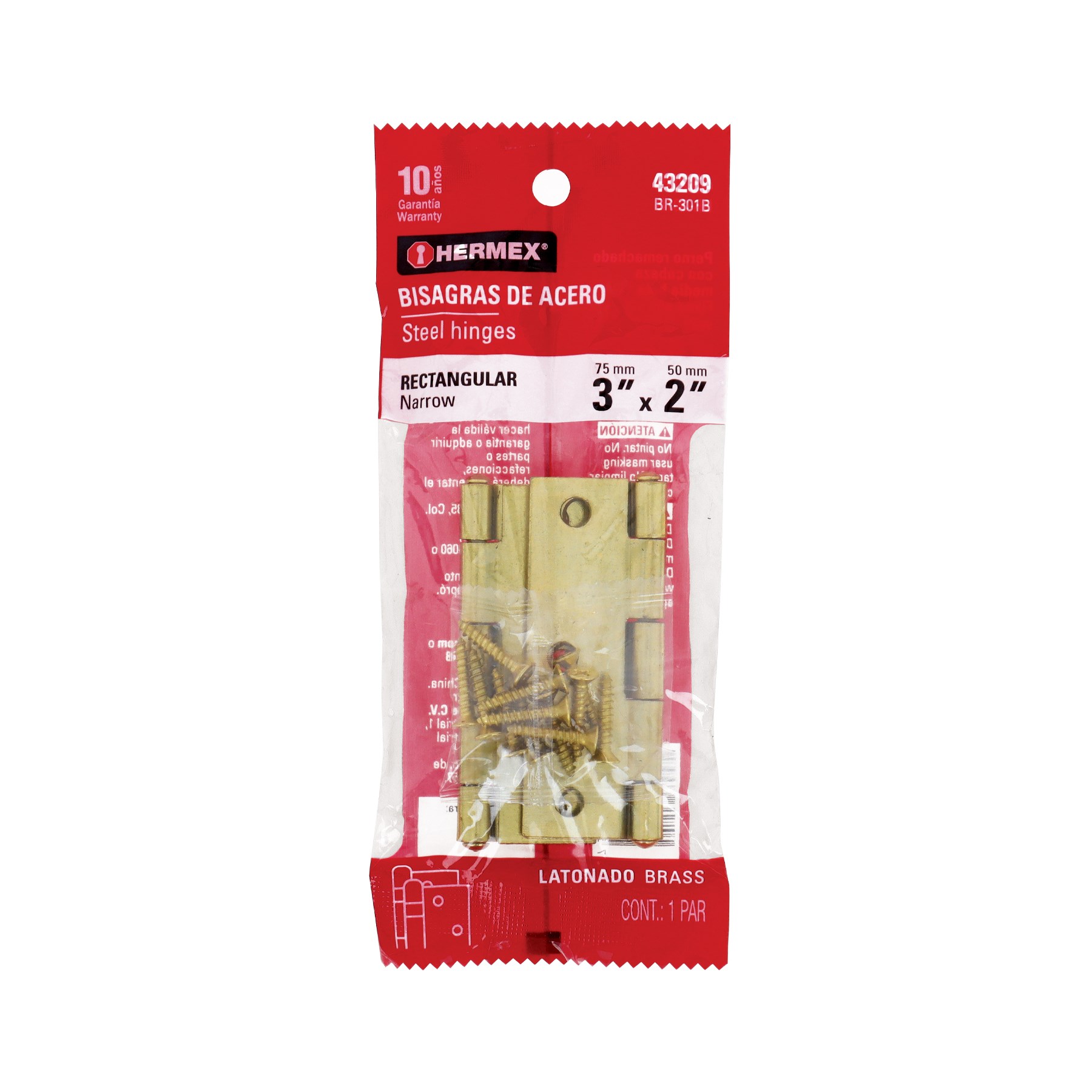 Imagen de BOLSA CON 2 BISAGRAS RECTANGULARES DE 3" EN ACERO LATONADO HERMEX