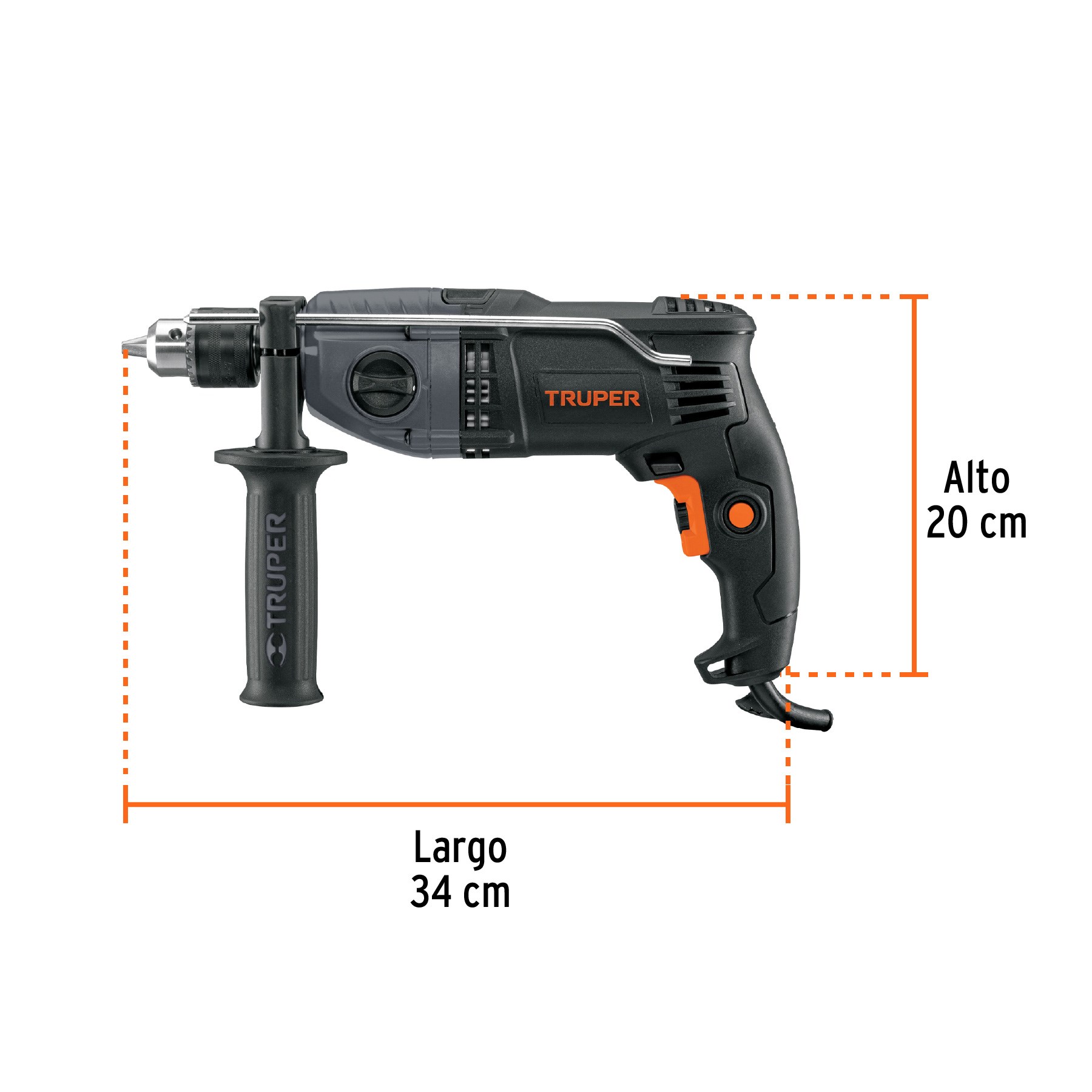 Motor de 900 W, montado sobre baleros de bolas para mayor vida útil y mejor desempeño. Caja de aluminio, doble engranaje con 2 velocidades mecánicas para alta resistencia de uso. Selector de función taladro o rotomartillo, con velocidad variable reversible. Mango auxiliar antiderrapante con giro de 360° para mayor comodidad y mayor control en el perforado. Varilla de control de profundidad.