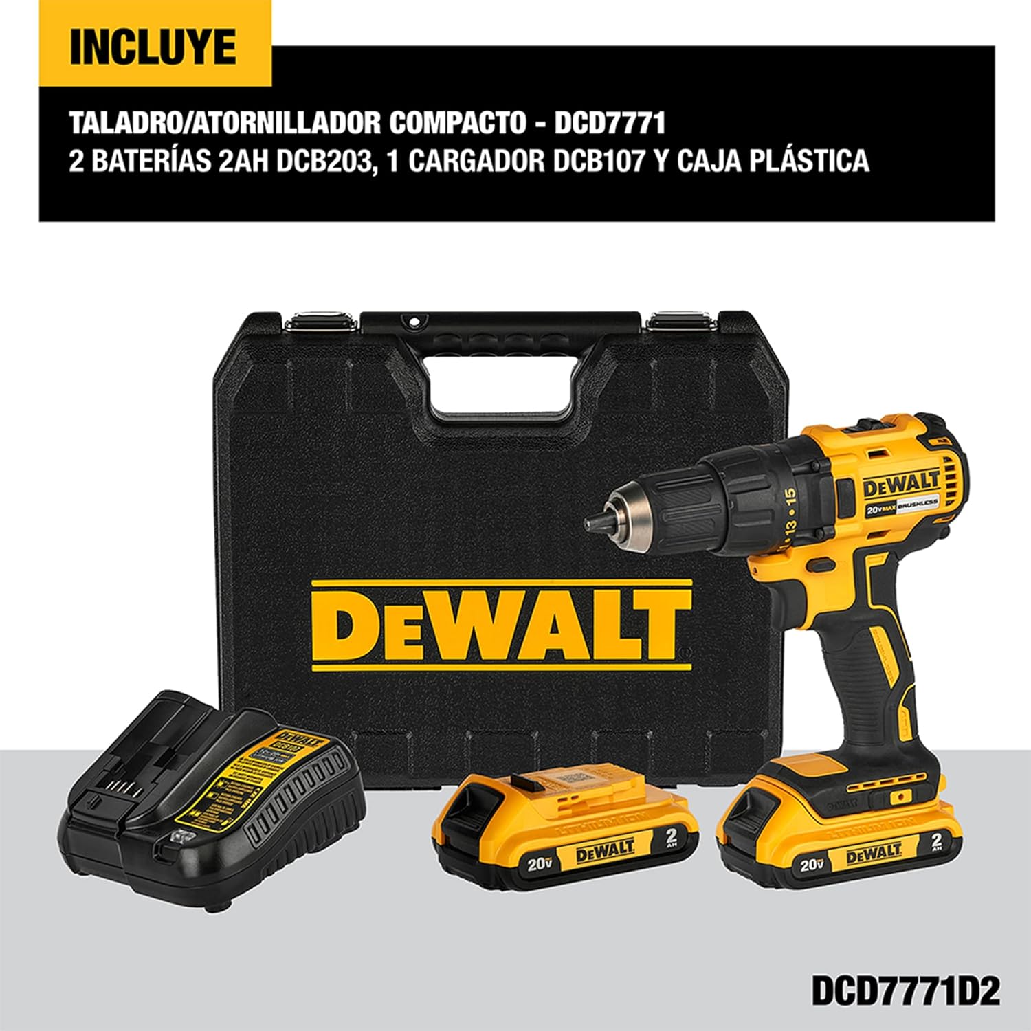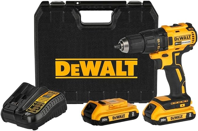 Potente taladro y atornillador DEWALT 20V MAX para tareas precisas y eficientes en madera y metal. Par máximo de 65Nm y potencia de 340 UWO para un desempeño excepcional. Taladro inalámbrico DEWALT con Portabrocas de 1/2" para mayor versatilidad y luz LED integrada para visibilidad en zonas oscuras. Kit de herramientas DEWALT de calidad y confiabilidad, esencial para profesionales que buscan excelencia. Incluye dos baterías de 2AH, cargador y estuche de transporte para mayor comodidad de las herramientas DEWALT.