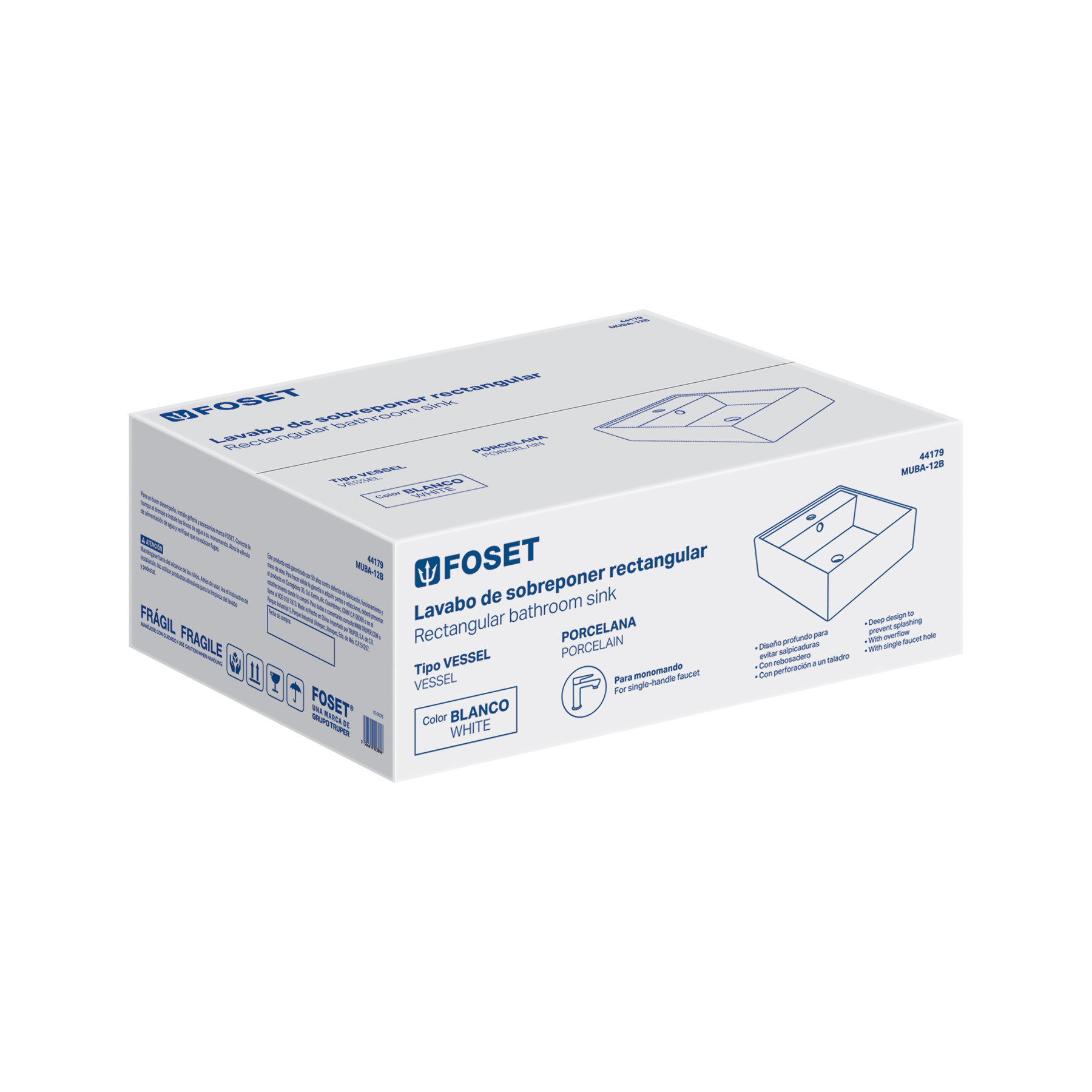 LAVABO DE PORCELANA DE SOBREPONER RECTANGULAR BLANCO FOSET