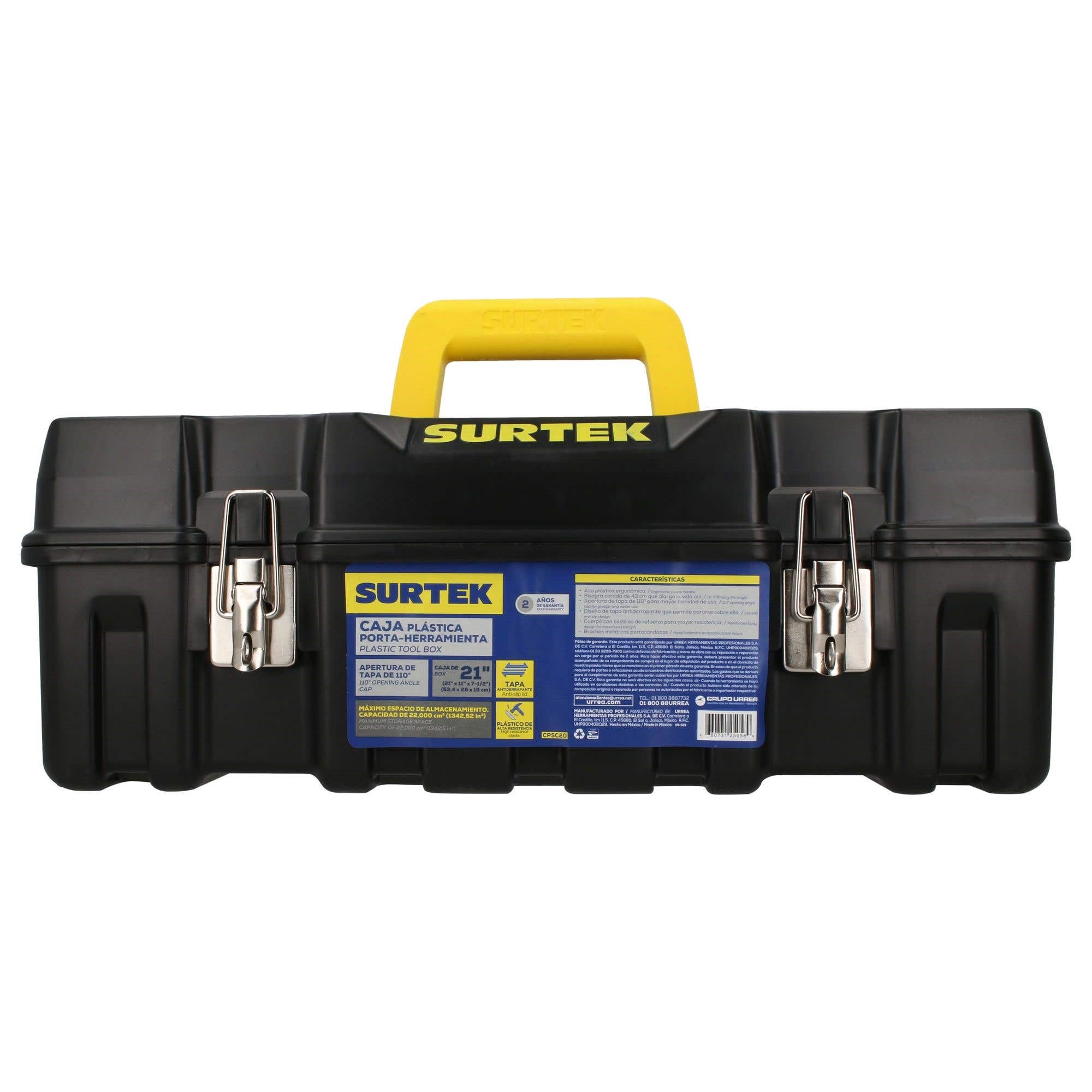 Plástico de alta resistencia Broches metálicos con porta candado Cuerpo con asas laterales Resistentes costillas de refuerzo Tapa de 110° de apertura Bisagra corrida Tapa antiderrapante que permite pararse sobre ella Adecuada para guardar herramientas con mango largo No incluye charola