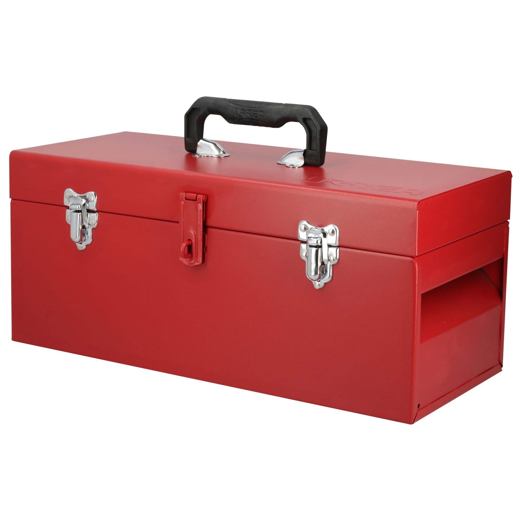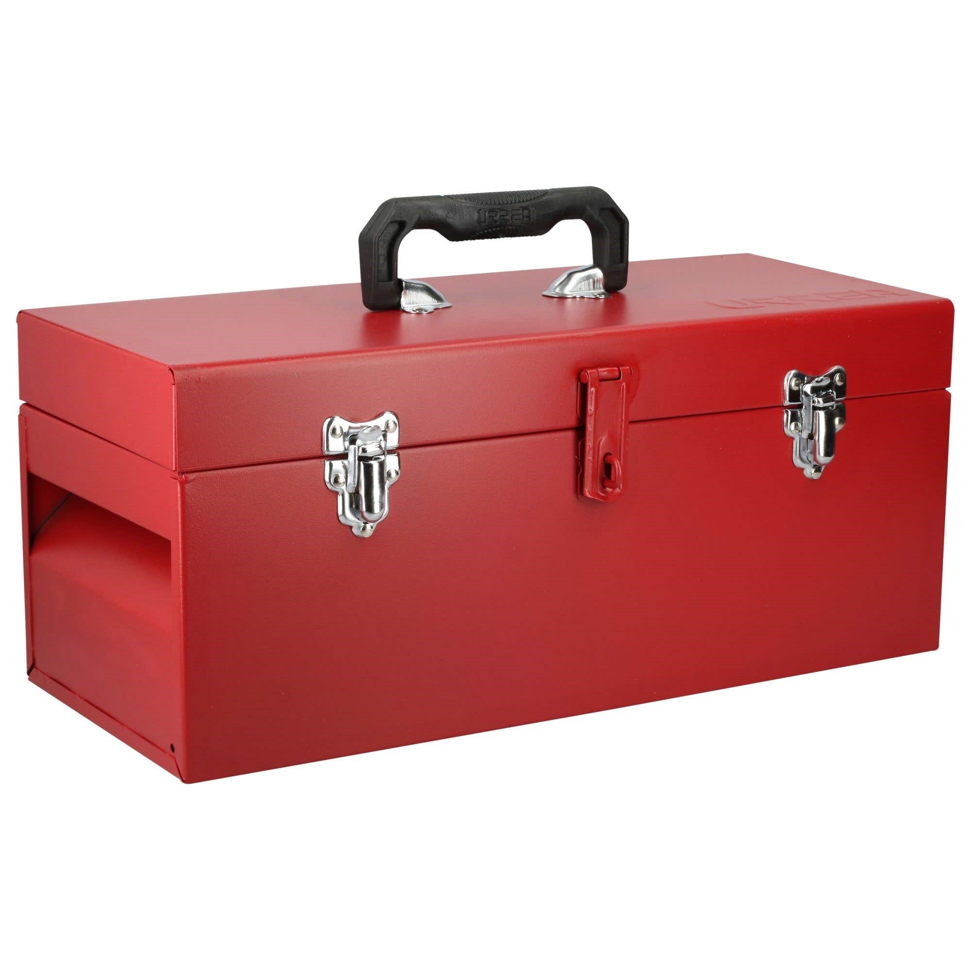 Ideal para la transportación y organización de distintos objetos Pintura electrostática formulada para resistir condiciones ambientales extremas Broches de seguridad metálicos con cubierta de cromo para evitar la corrosión con porta candado Maneral de plástico en inyección de PVC de alta resistencia con refuerzo metálico en la base del maneral para una sujeción más firme y segura