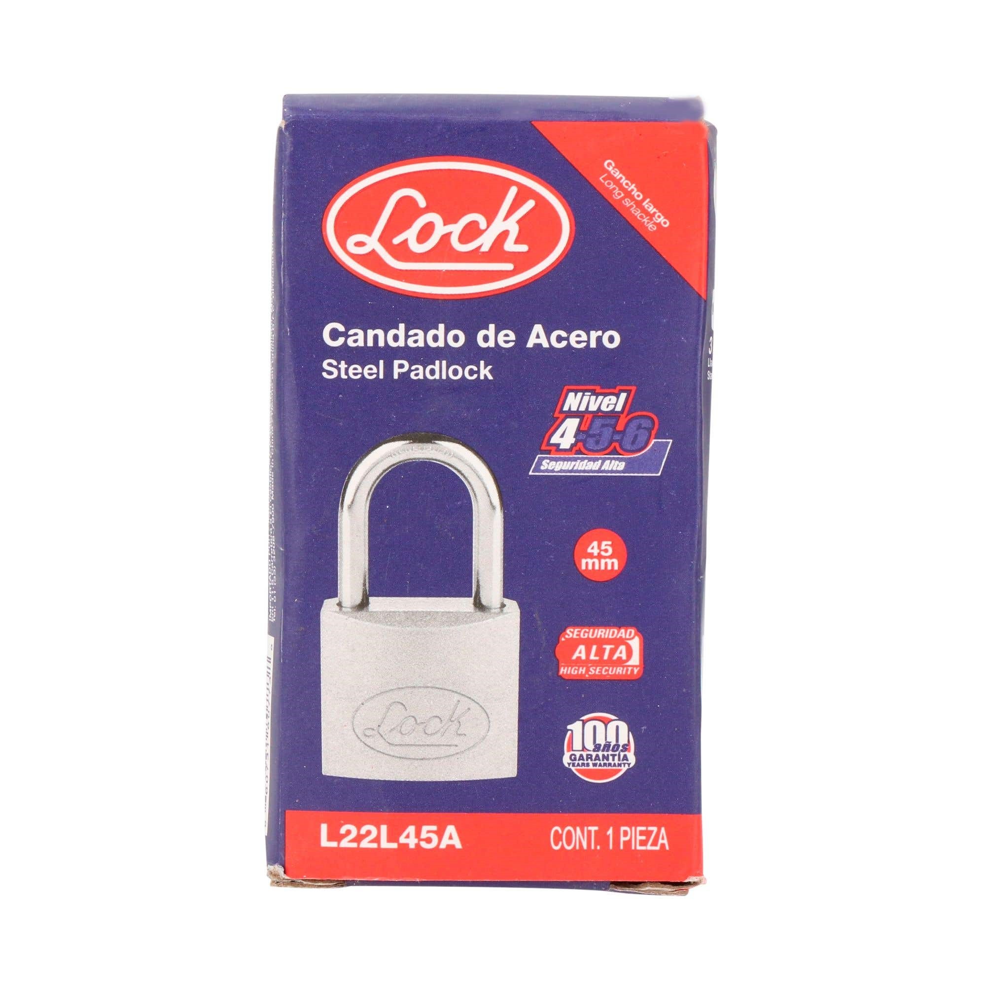 CANDADO DE ACERO LARGO LLAVE ESTANDAR 45MM EN CAJA LOCK