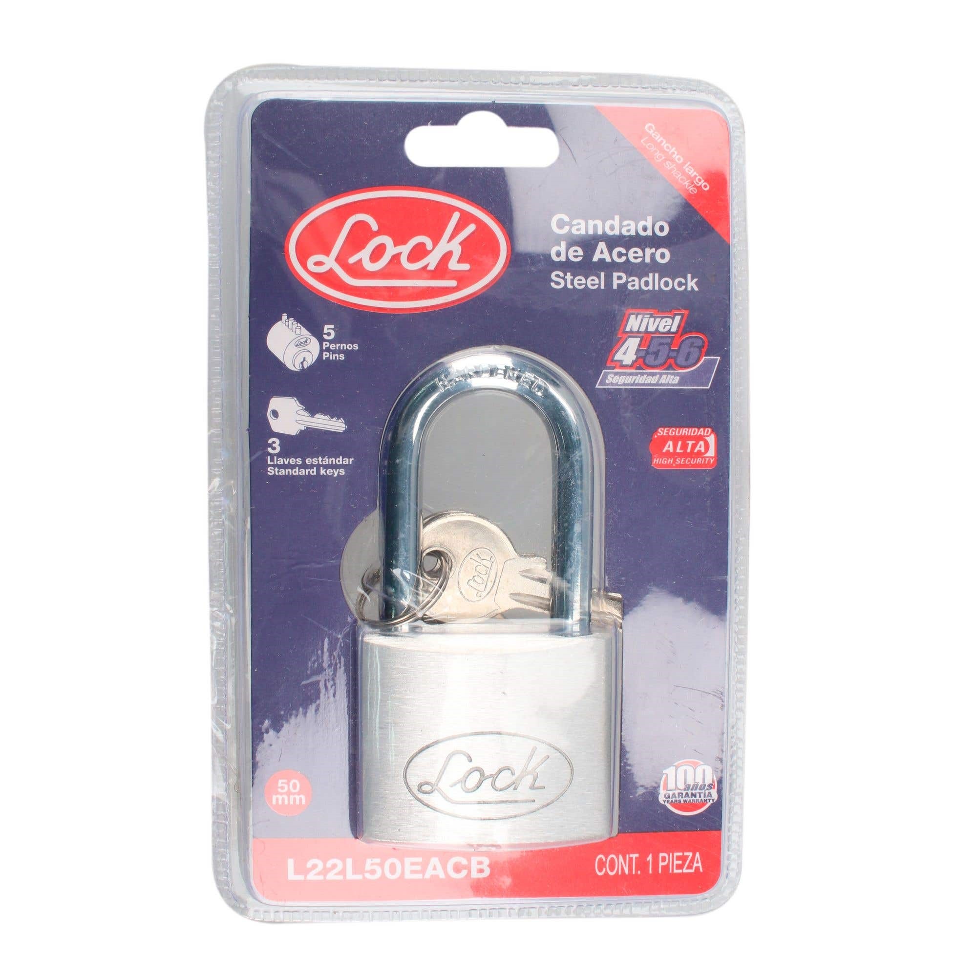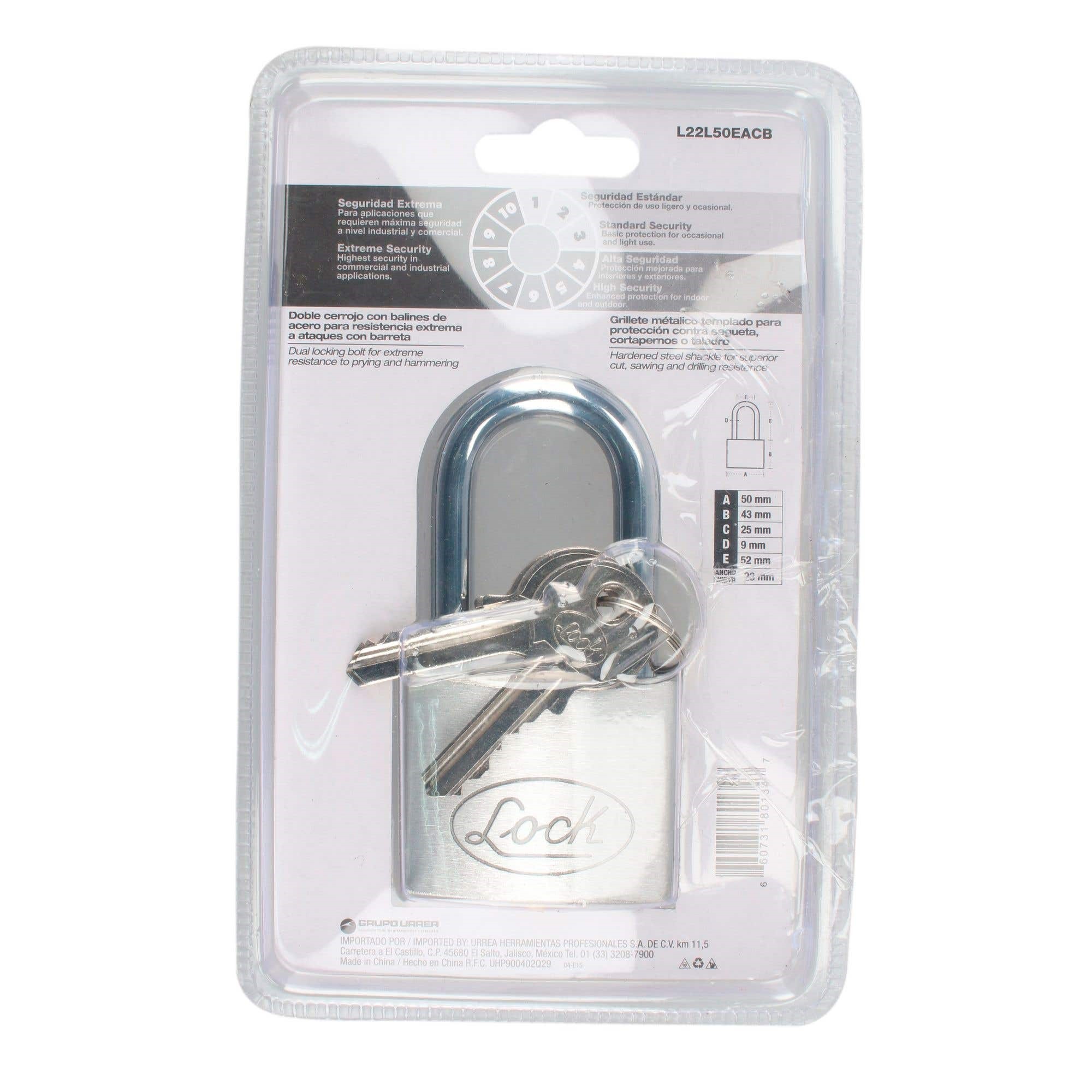 CANDADO DE ACERO LARGO LLAVE ESTANDAR 50MM LOCK