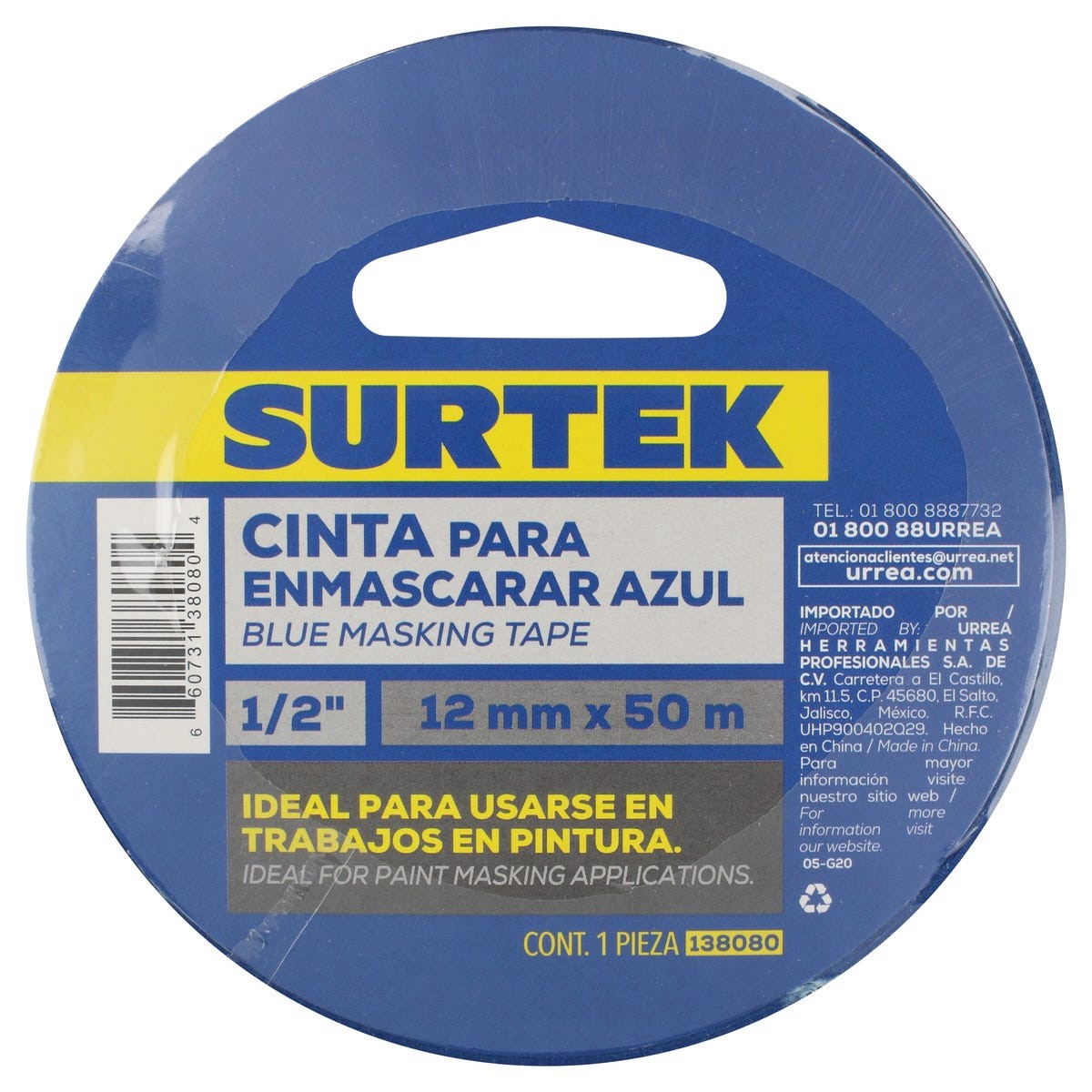 CINTA MASKING TAPE PARA ENMASCARAR 13 MM X 50 MTS COLOR AZUL SURTEK