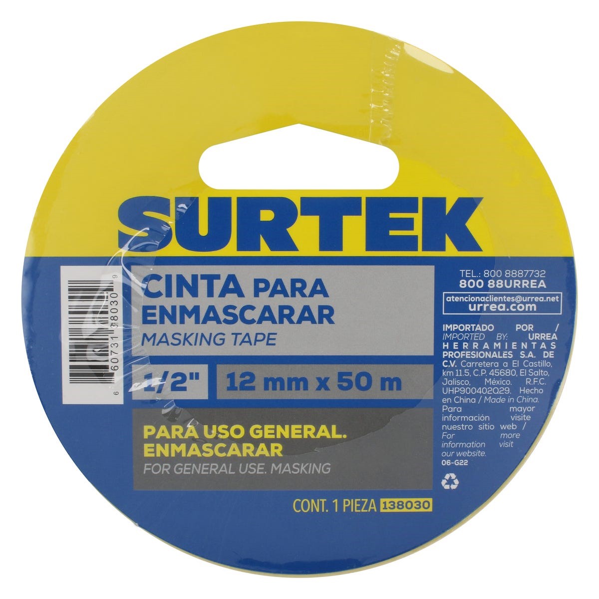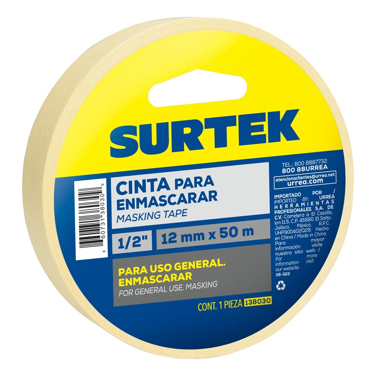 CINTA MASKING TAPE PARA ENMASCARAR 13 MM X 50 MTS SURTEK