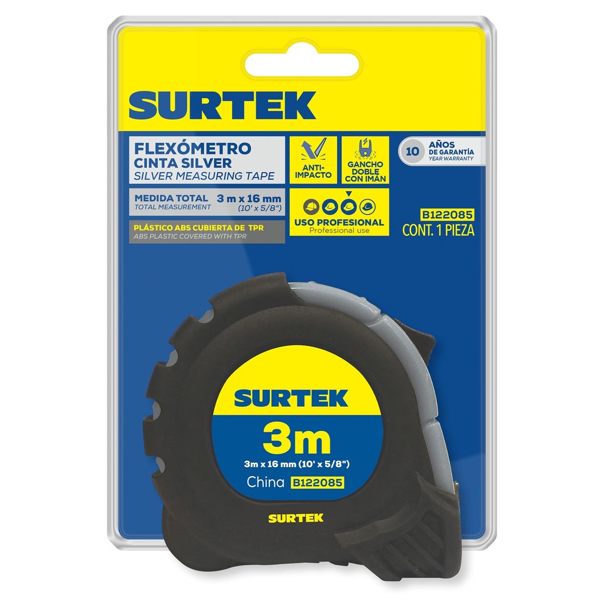 CINTA DE MEDIR CON CARCASA ANTI-IMPACTO SILVER 3 MTS X 5/8" SURTEK