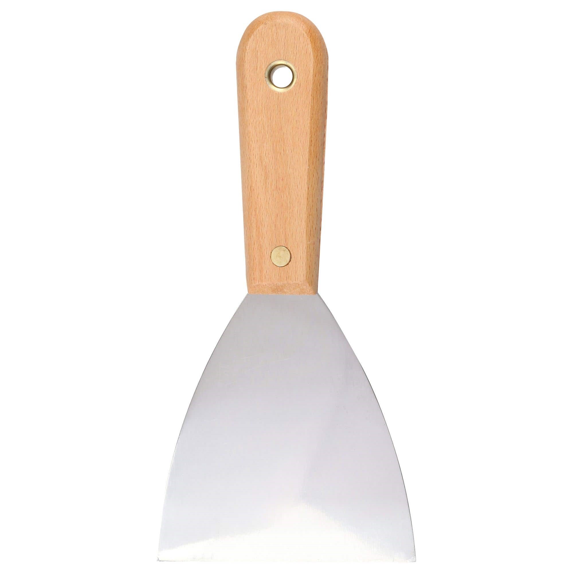 Diseñada con una hoja de acero tratado térmicamente que asegura durabilidad y resistencia al desgaste, ideal para trabajos de raspado y alisado de materiales como masilla, yeso y pintura Cuenta con una hoja flexible que facilita la aplicación y el alisado de materiales en superficies irregulares El mango está fabricado en madera de alta calidad, proporcionando un toque clásico y natural a la herramienta, ideal para trabajos que requieran firmeza de aplicación