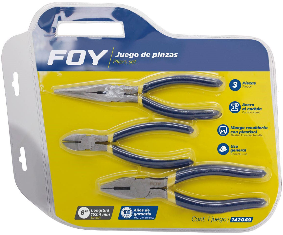JUEGO 3 PINZAS PARA ELECTRICISTA FOY