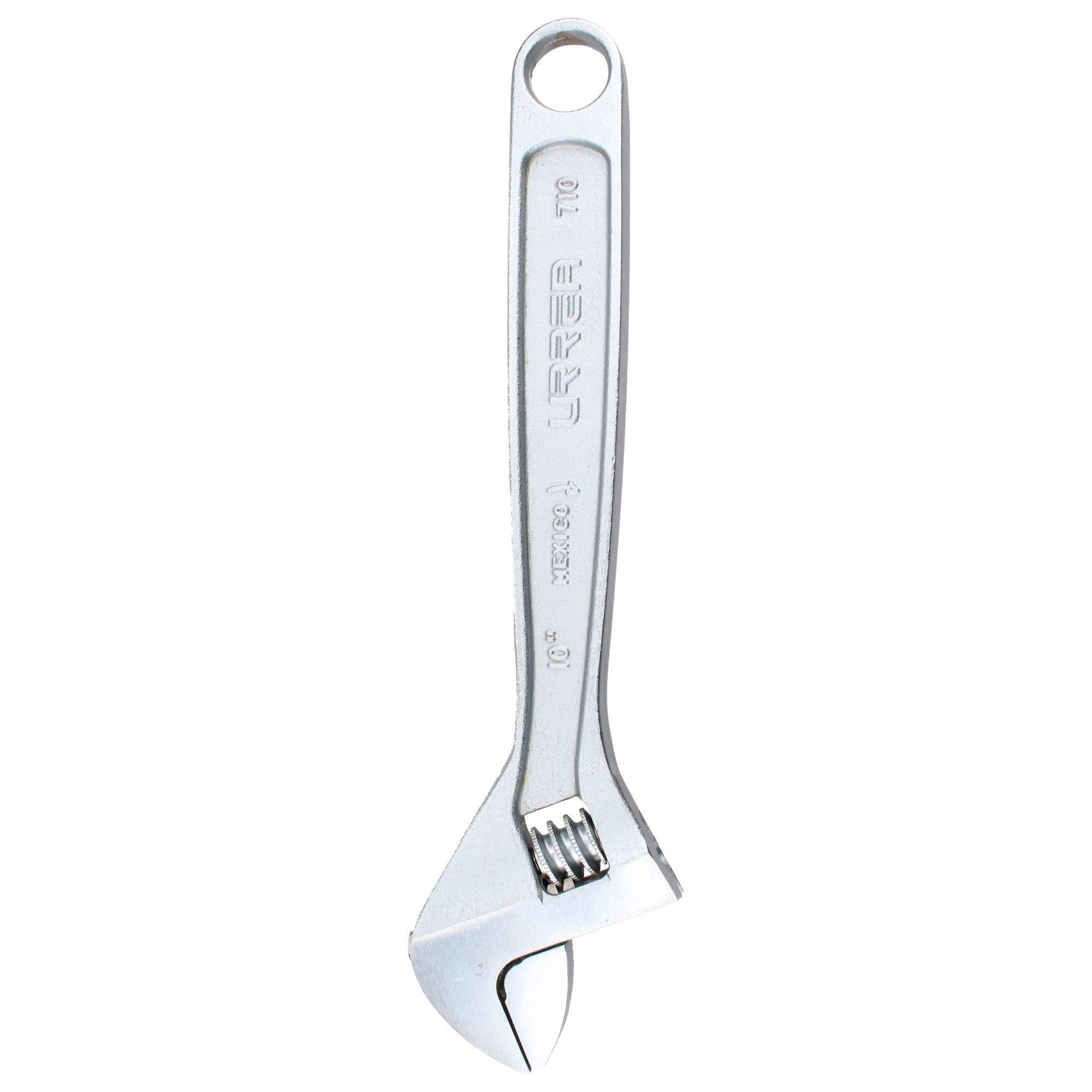 Acabado al cromo-níquel para evitar la corrosión Maquinado de gran precisión para asegurar un suave accionamiento y mejor ajuste al cerrar la quijada Mango ergonómico Abertura con esquinas redondeadas que evitan la concentración de esfuerzo y un mejor ajuste Mordazas de capacidad extra que permite cubrir una amplia variedad de tornillos y tuercas