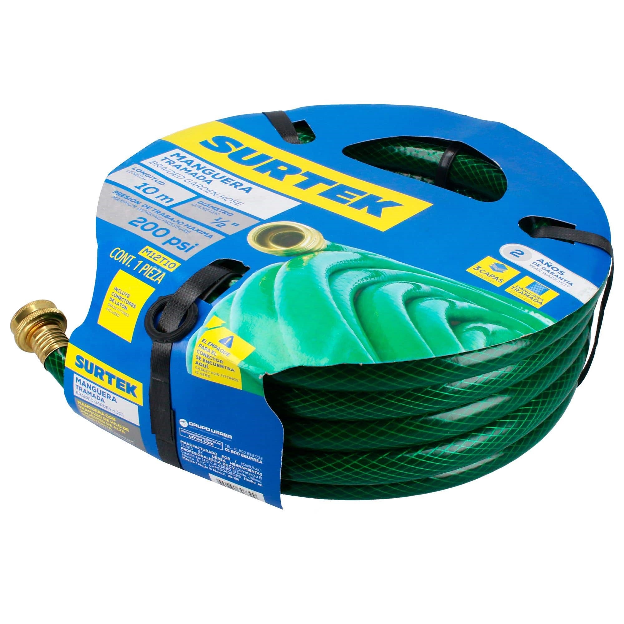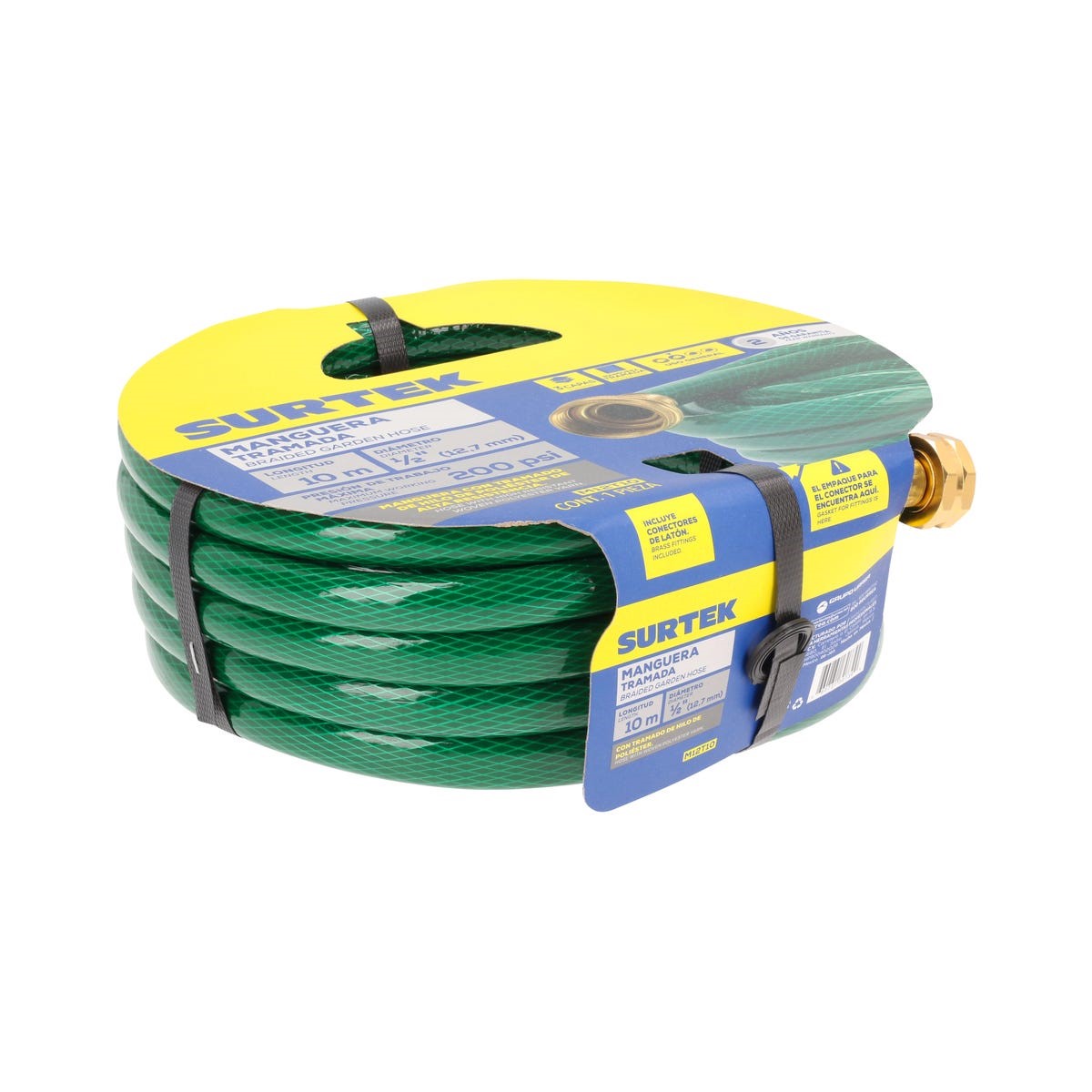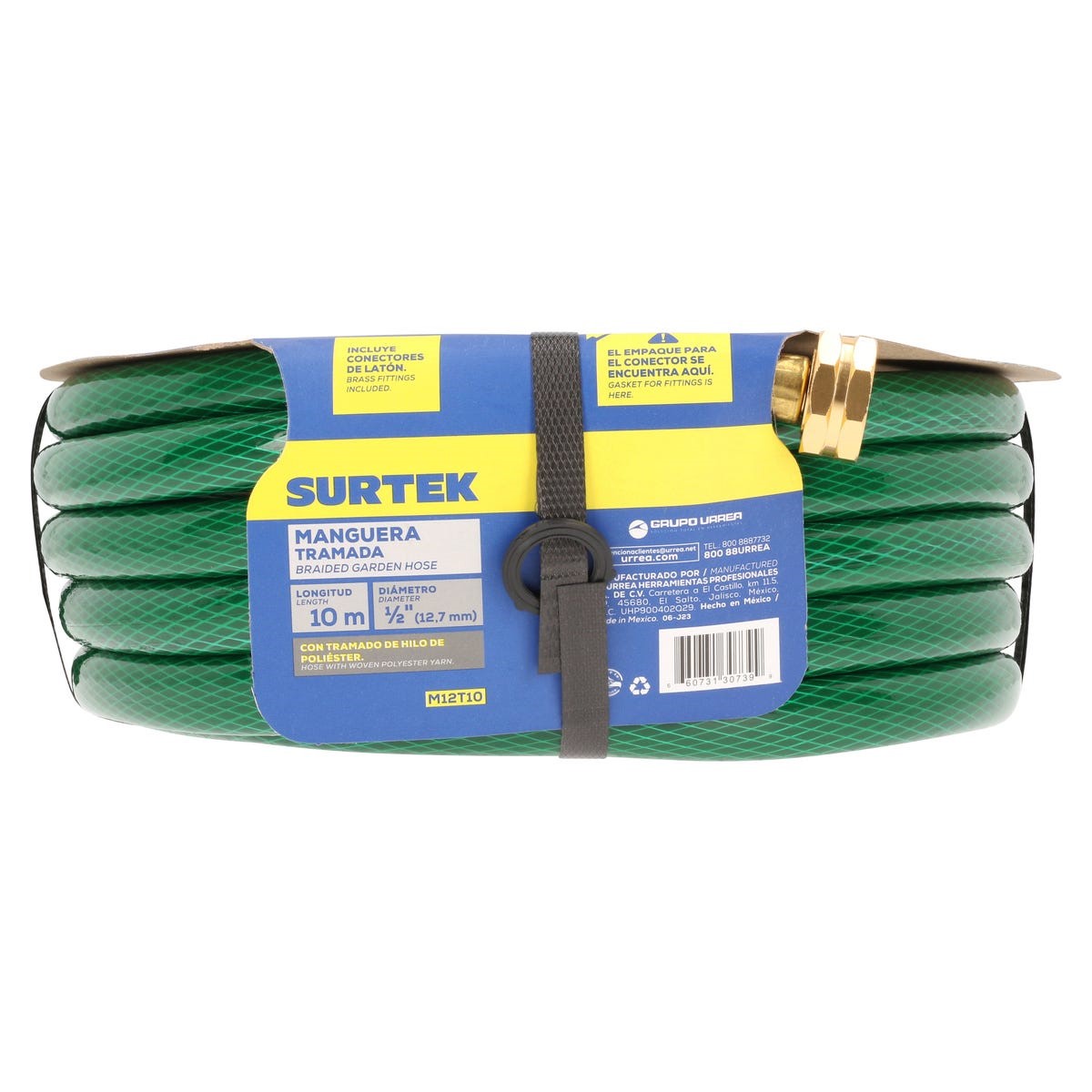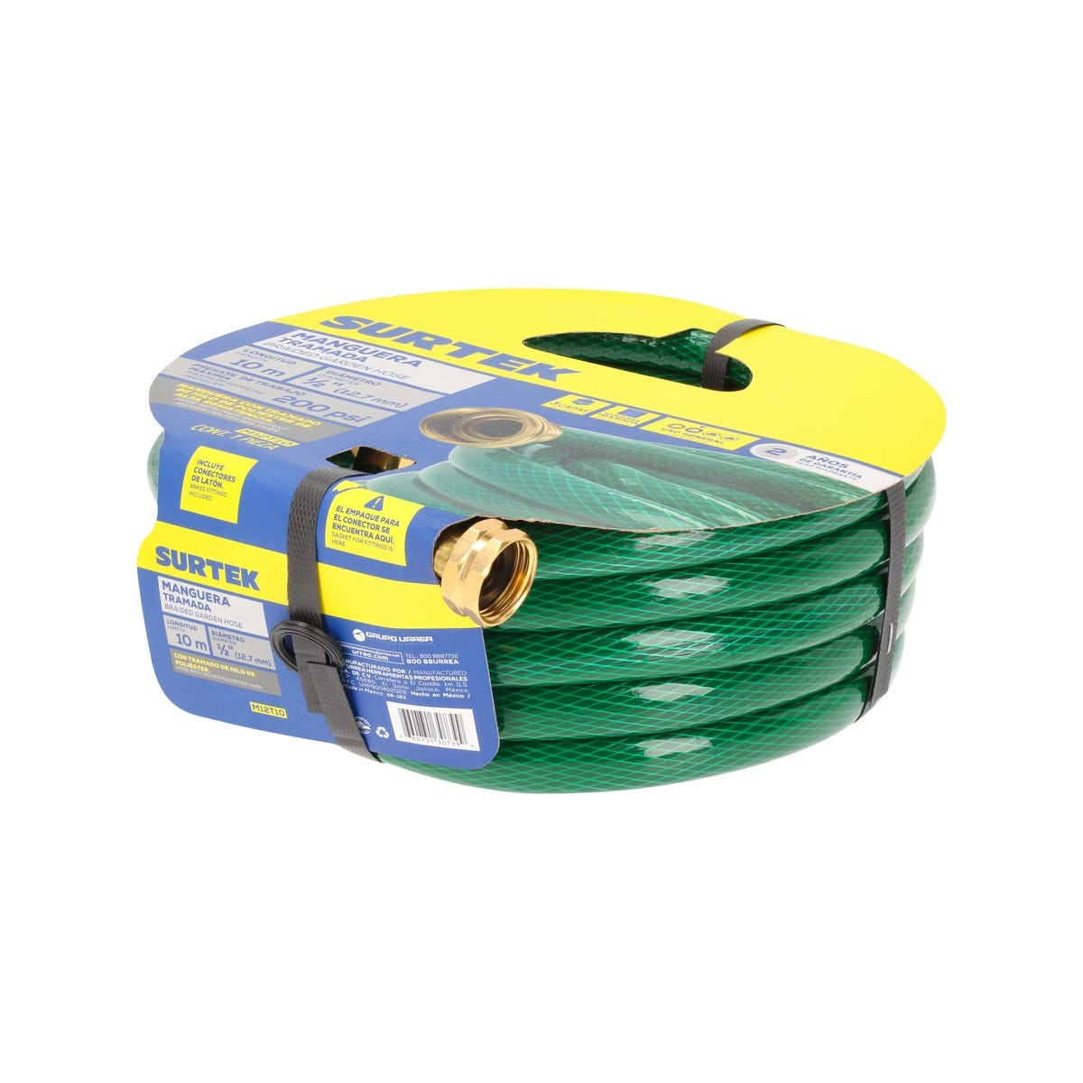 MANGUERA TRAMADA VERDE 1/2" ARMADA CON CONECTOR METALICO 10 MTS SURTEK