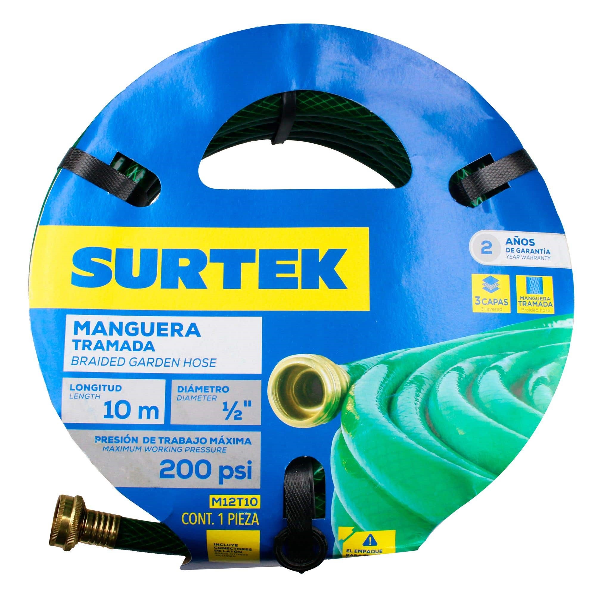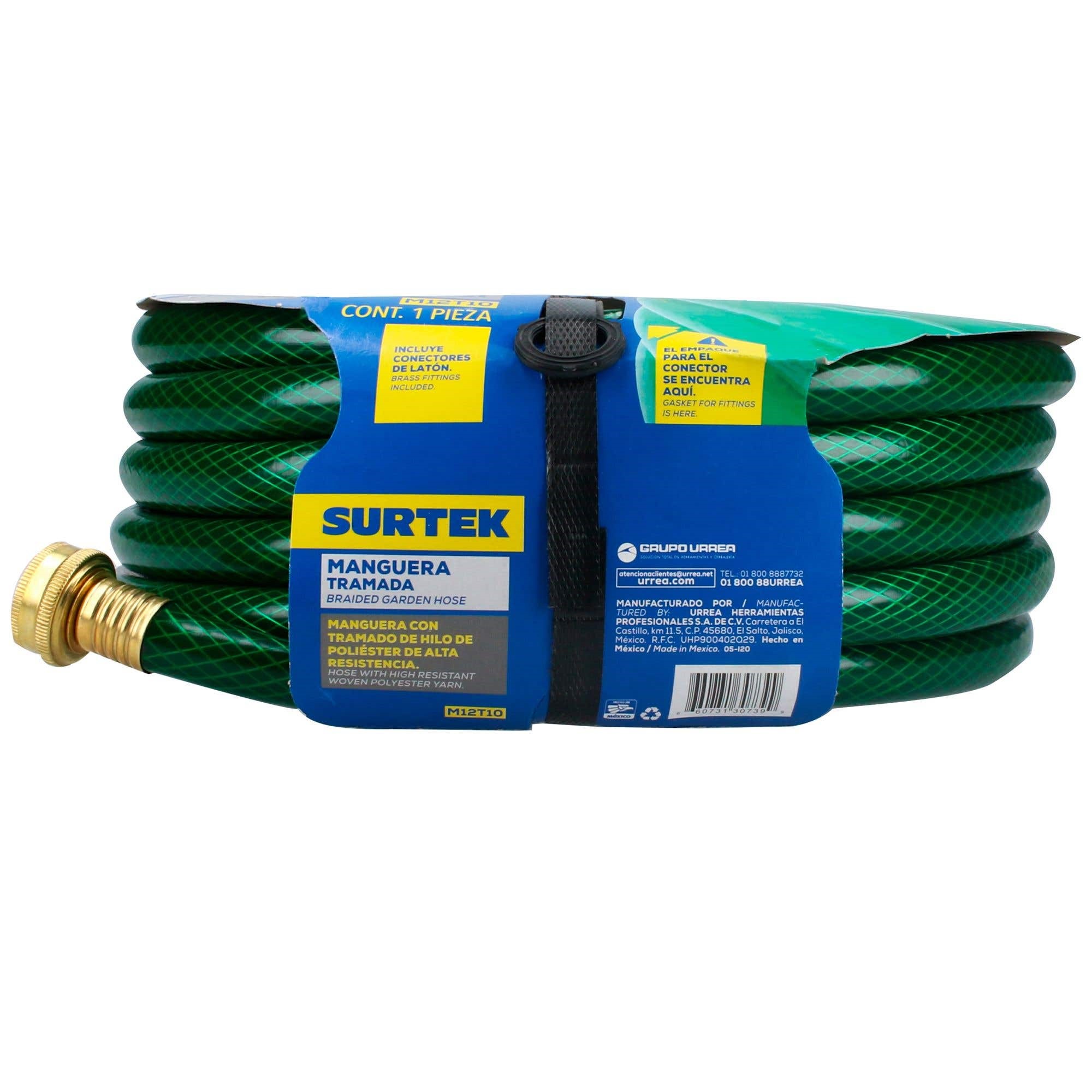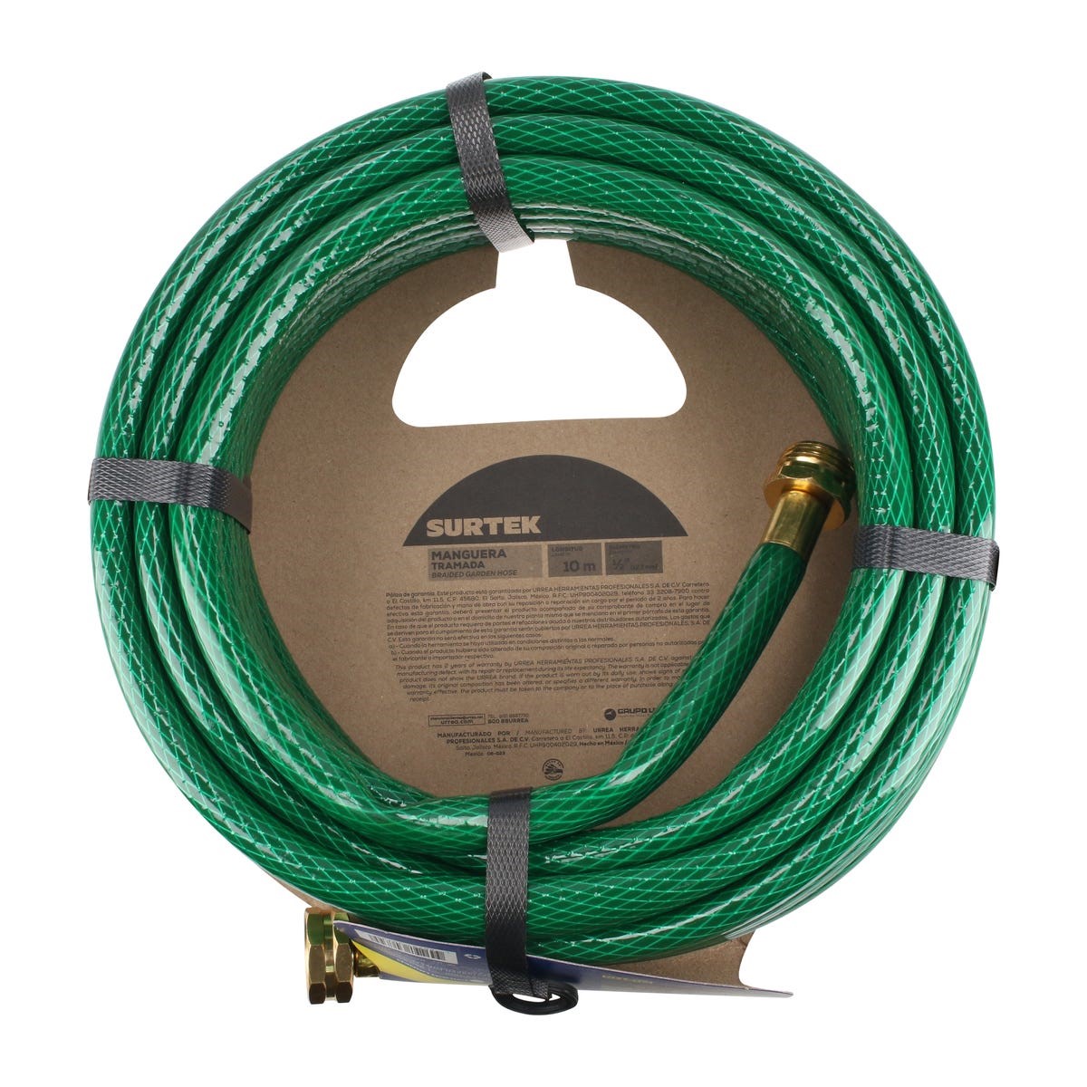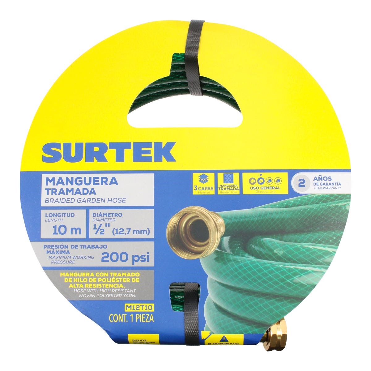 MANGUERA TRAMADA VERDE 1/2" ARMADA CON CONECTOR METALICO 10 MTS SURTEK