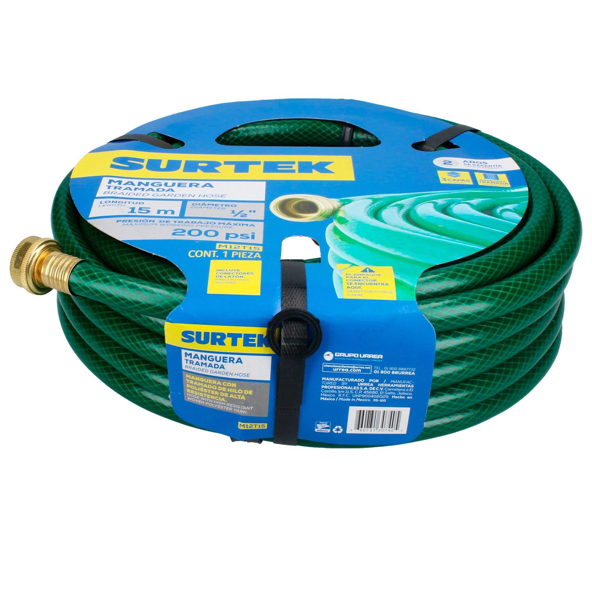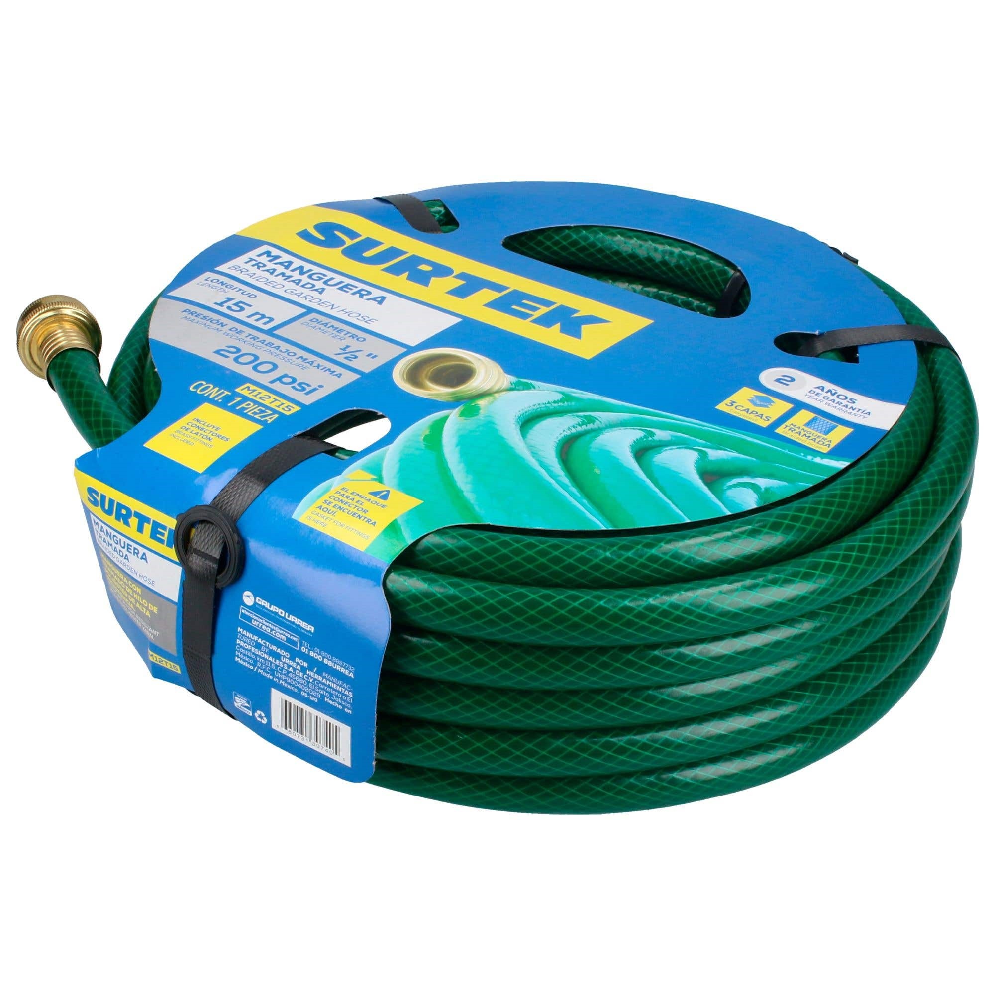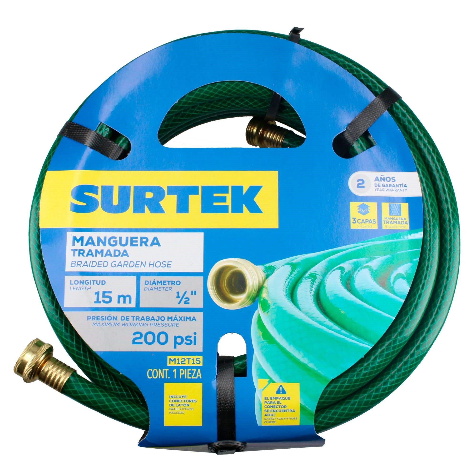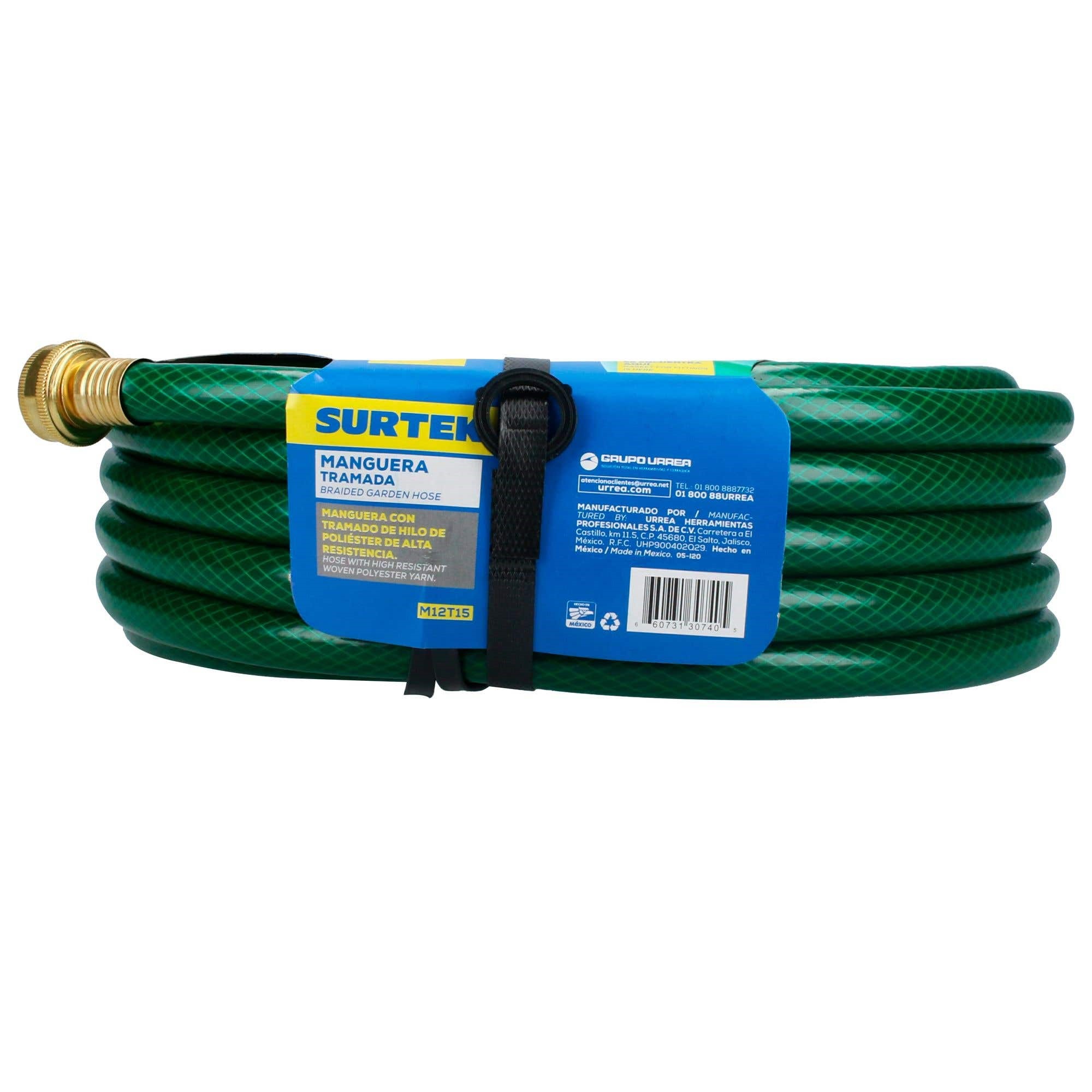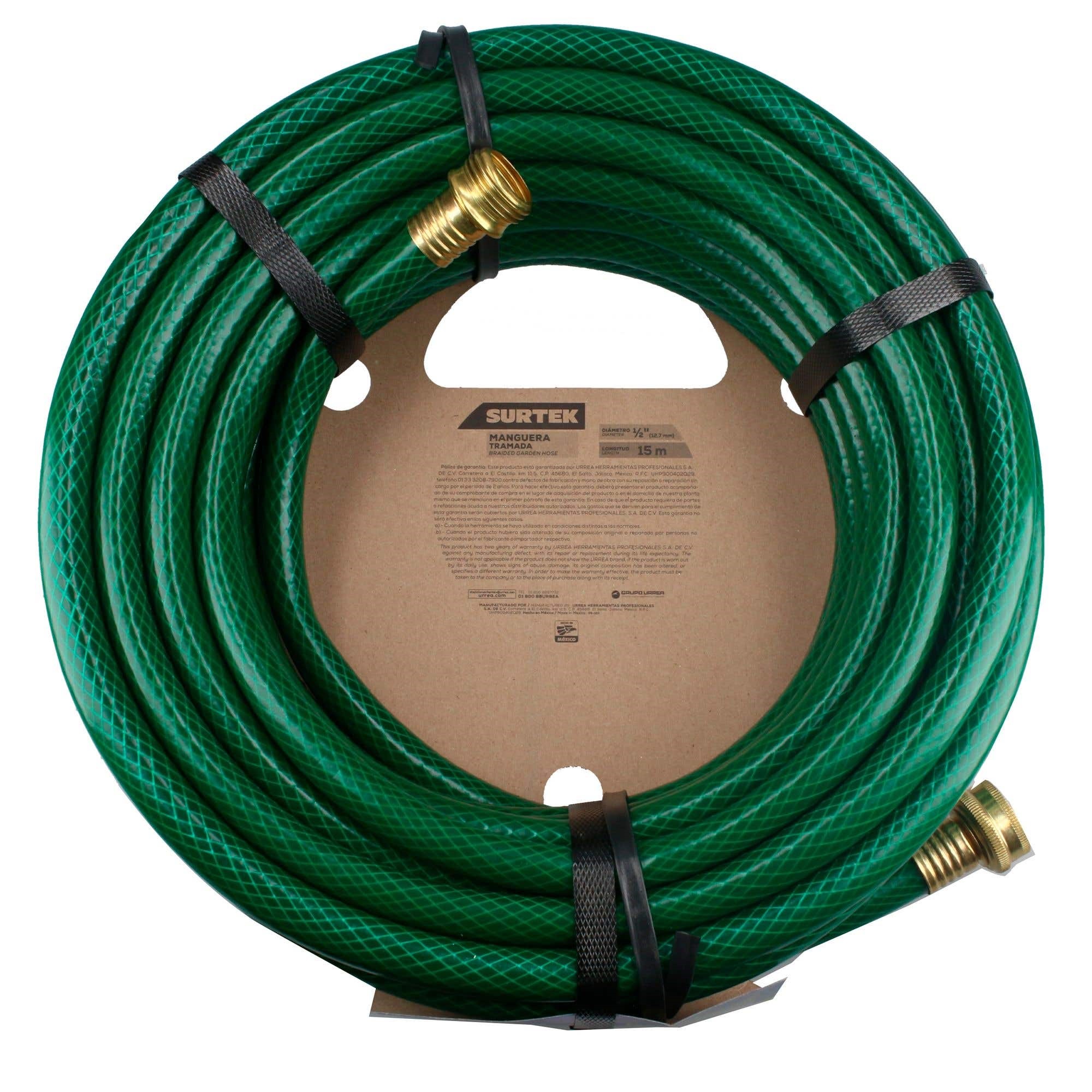 MANGUERA TRAMADA VERDE 1/2" ARMADA CON CONECTOR METALICO 15 MTS SURTEK