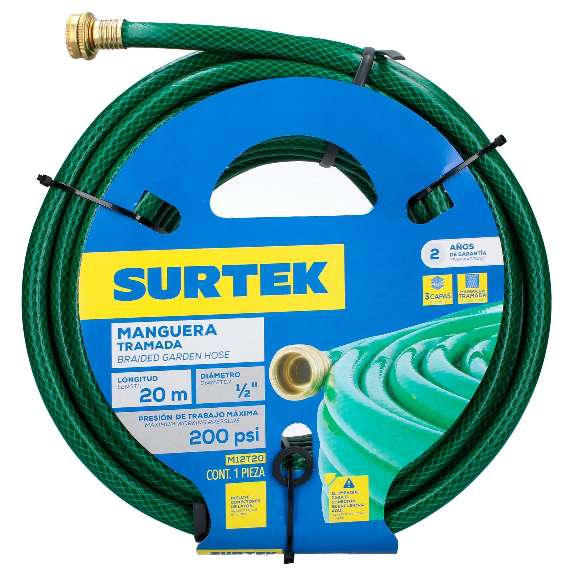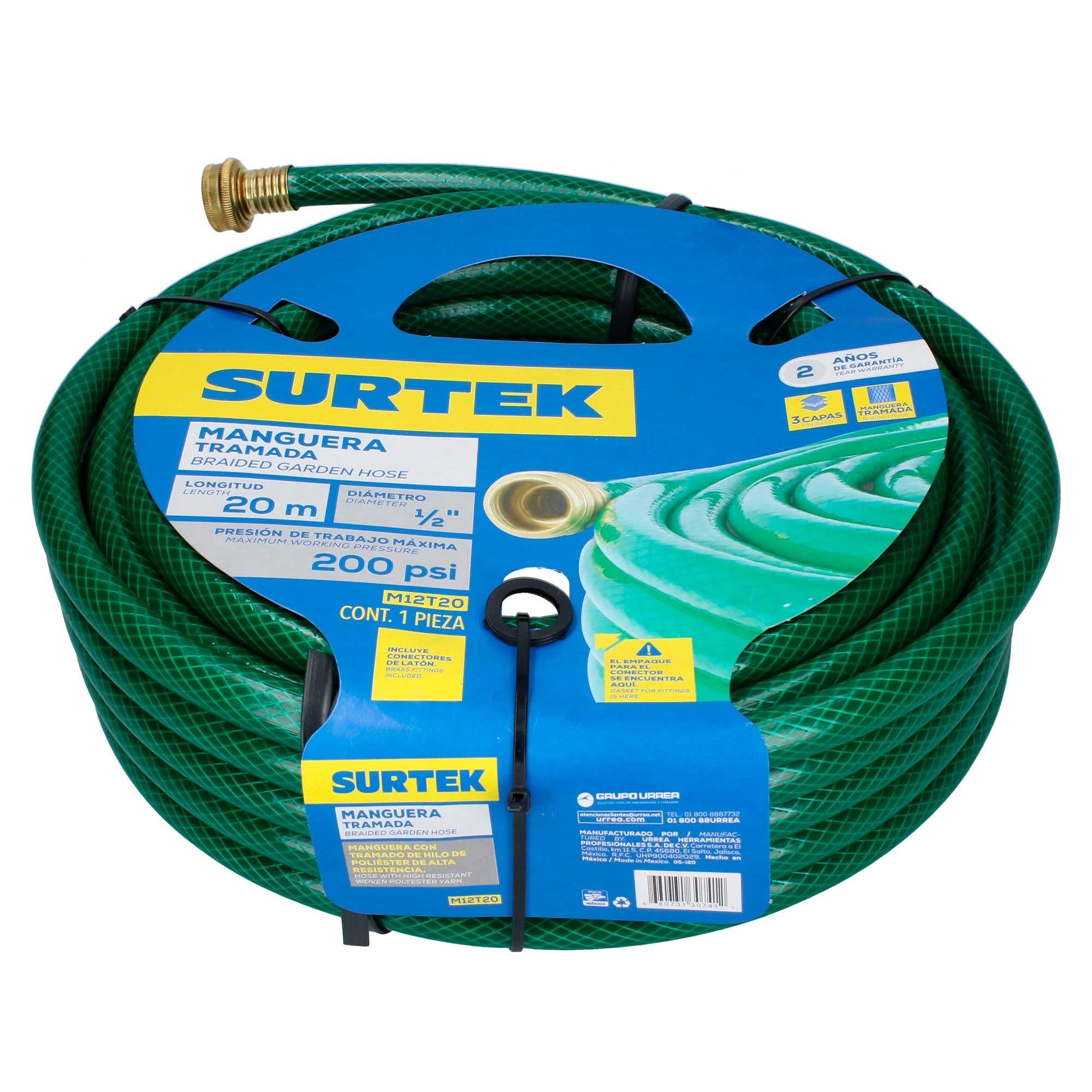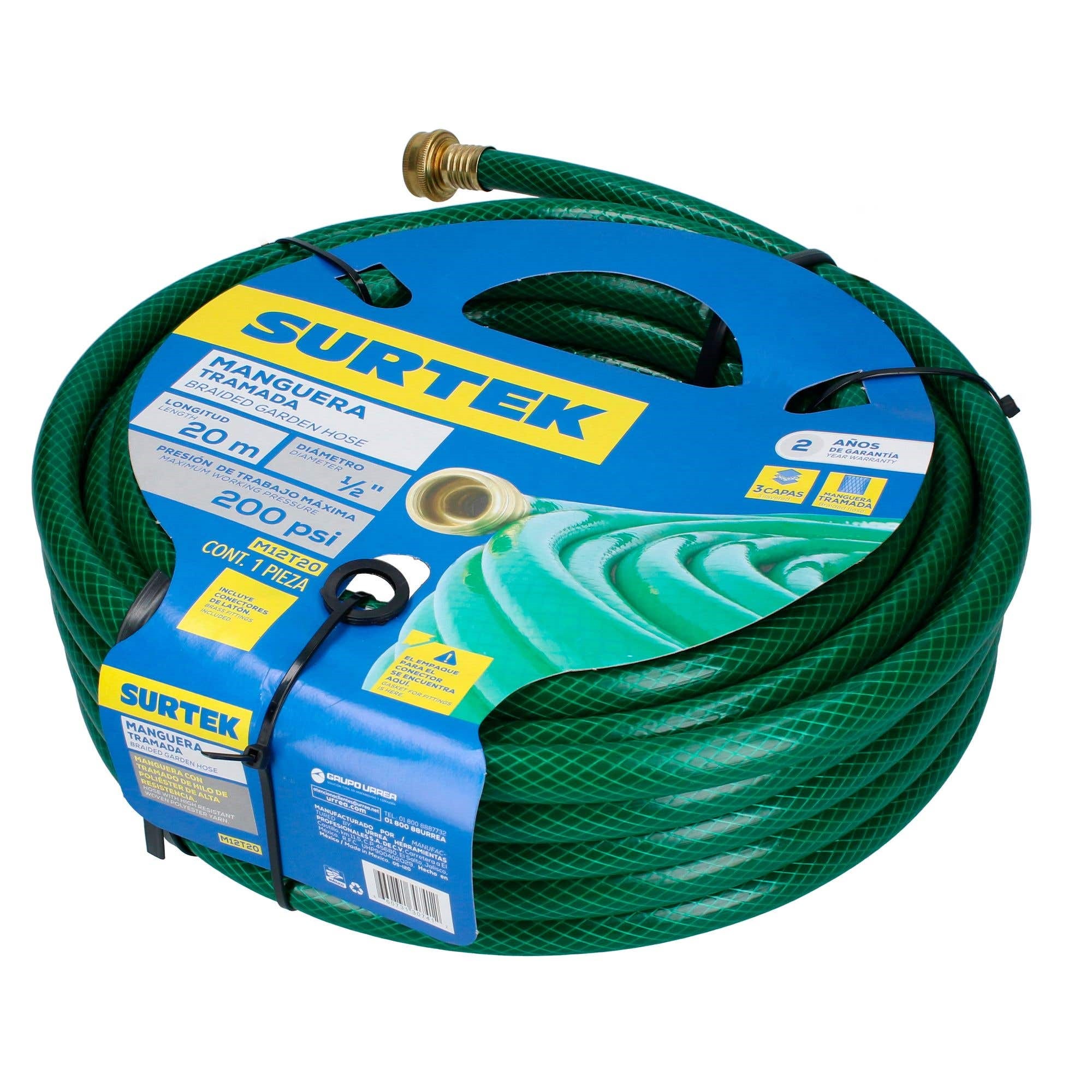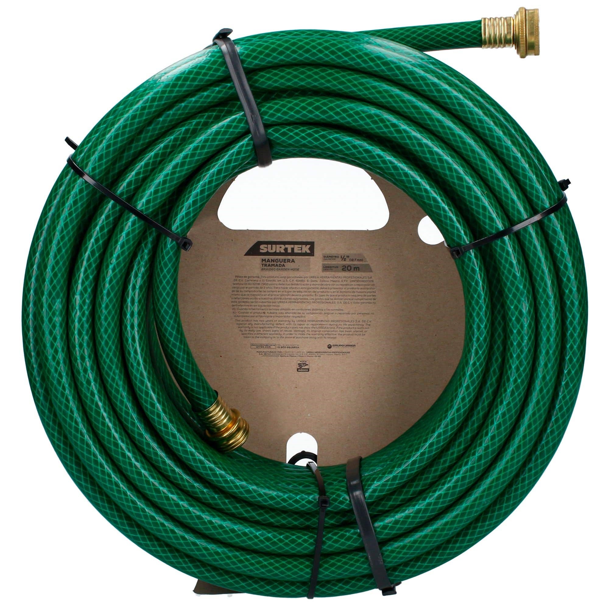 MANGUERA TRAMADA VERDE 1/2" ARMADA CON CONECTOR METALICO 20 MTS SURTEK