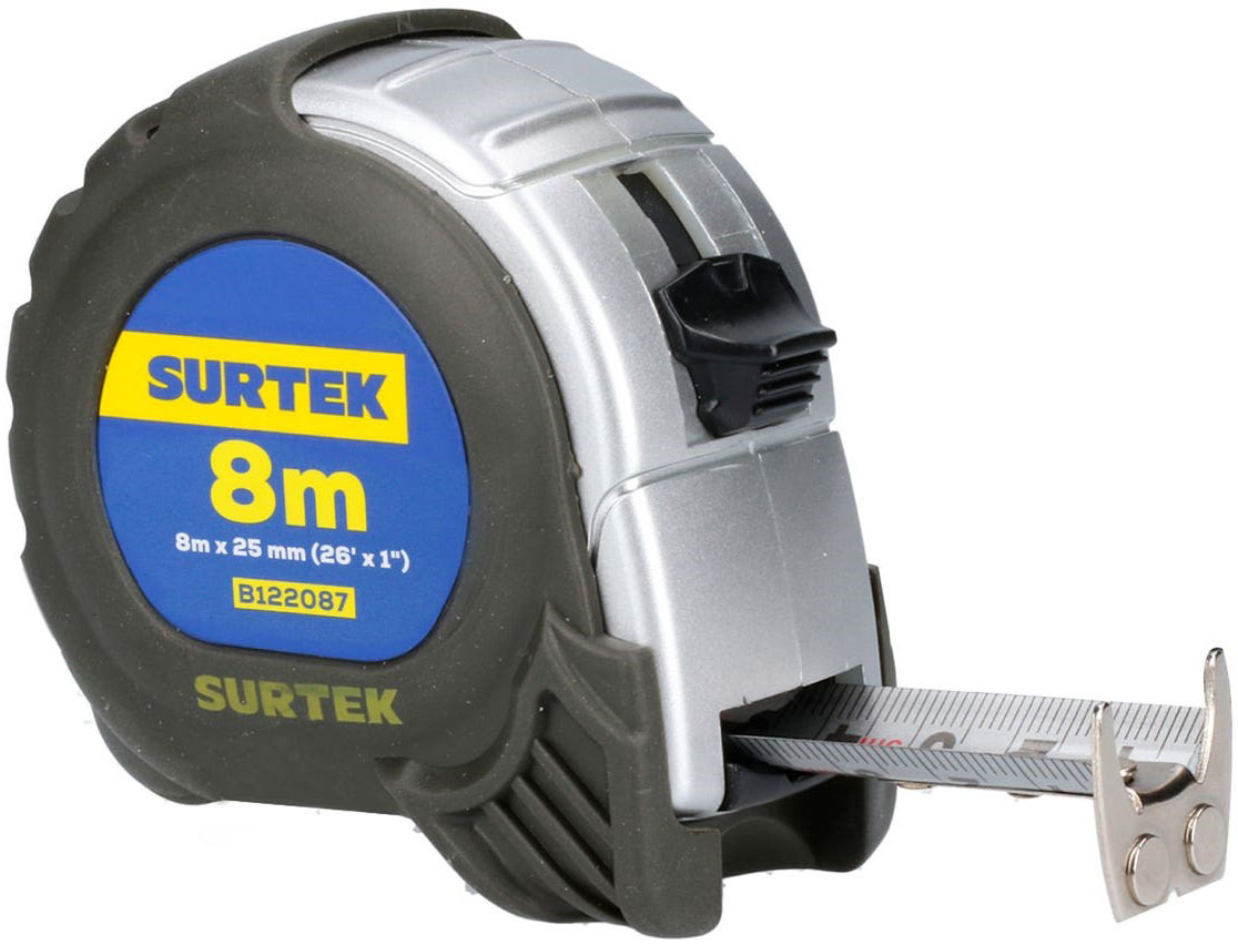 CINTA DE MEDIR CON CASCASA ANTI-IMPACTO SILVER 8 MTS X 1" SURTEK