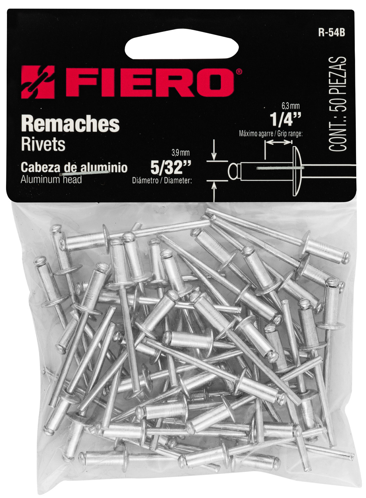 BOLSA CON 50 REMACHES DE 5/32" X 1/4" DE ALUMINIO CON MEDIDA DE ALA 5/16" FIERO