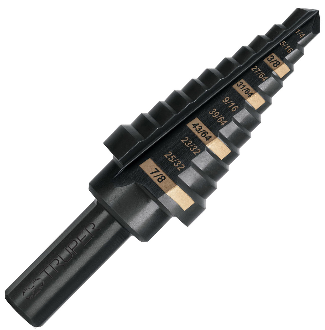 Fabricada en acero M2 de alta velocidad (HSS) con acabado óxido negro.
