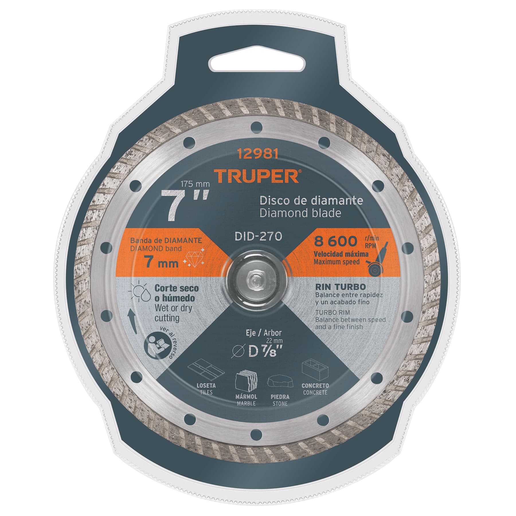 Imagen de DISCO DE DIAMANTE DE 7" X 2.8 MM CON RIN TURBO TRUPER