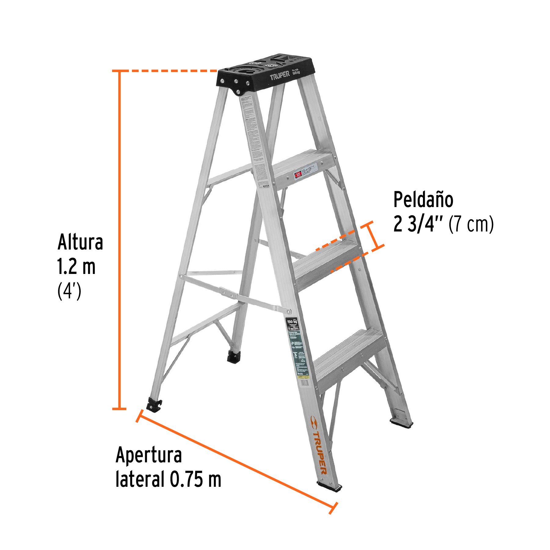 DescripciónEstructura de aluminio. Alcance máximo para una persona de 1.68 m de estatura. Peldaños antideComentarios0 Estructura de aluminio. Alcance máximo para una persona de 1.68 m de estatura. Peldaños antide Escribe una reseña No hay comentarios aún