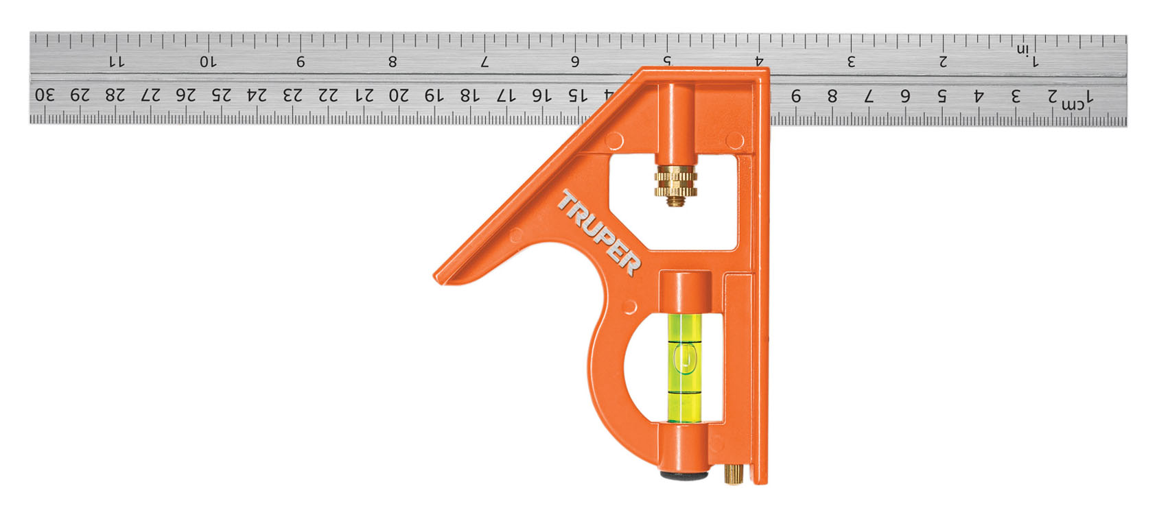 Regla de acero inoxidable con graduación (sistema métrico y standard) estampada en bajo relieve con. tinta negra para mejor visibilidad.