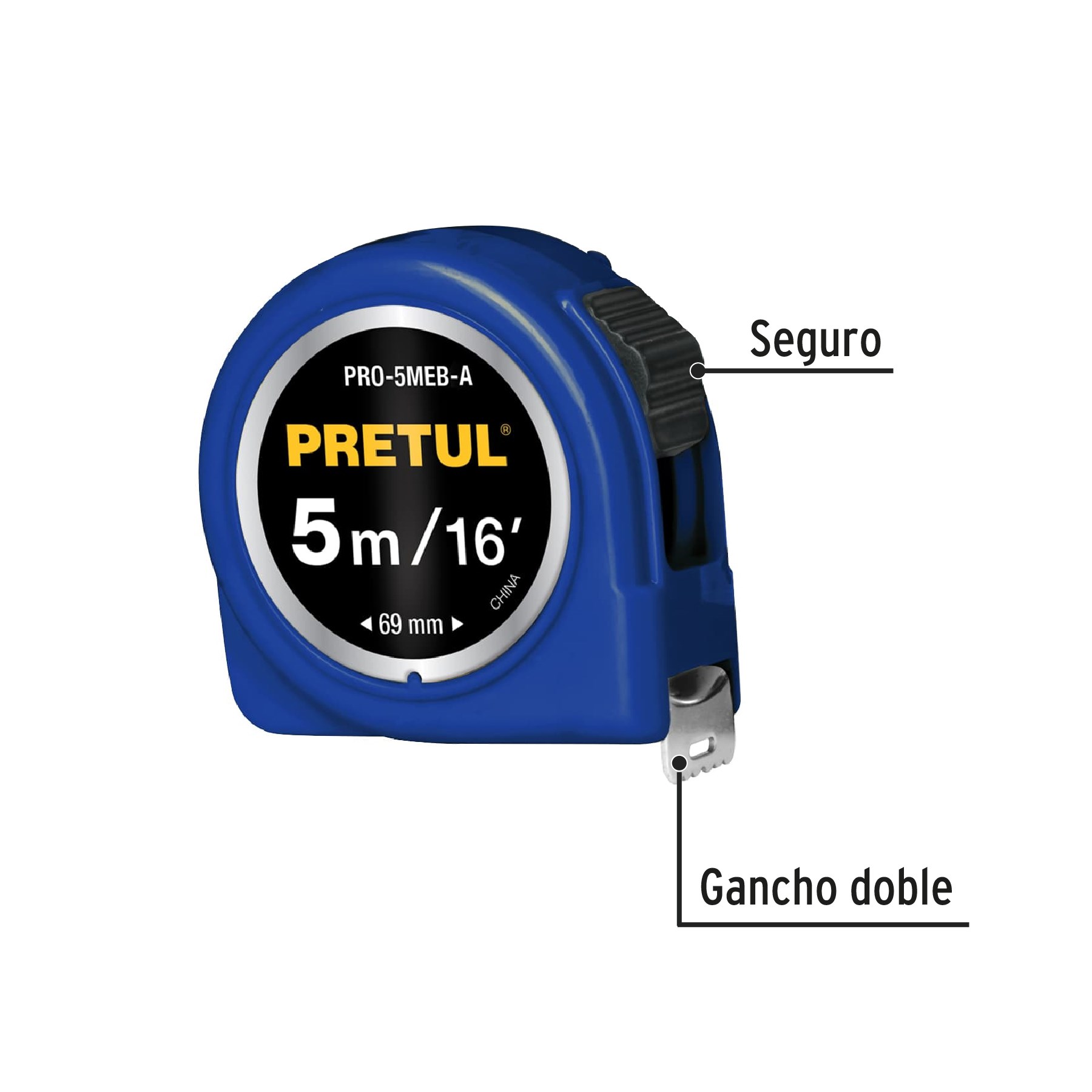 FLEXOMETRO AZUL DE 5 MTS CON CINTA DE 19 MILIMETROS PRETUL