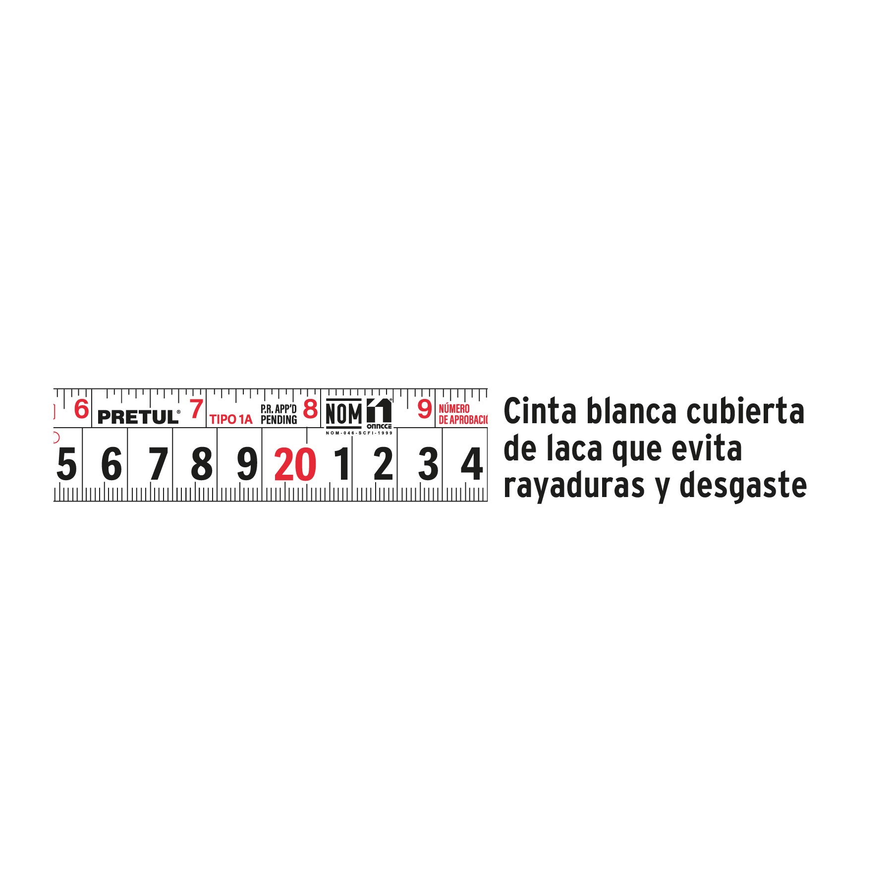 Fabricado en ABS. Cinta blanca cubierta de laca que evita rayaduras y desgaste.