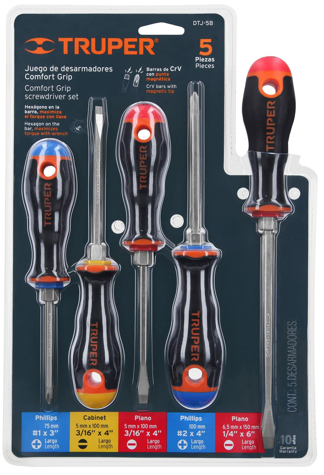 Marcado y código de color para fácil identificación de medida y punta.