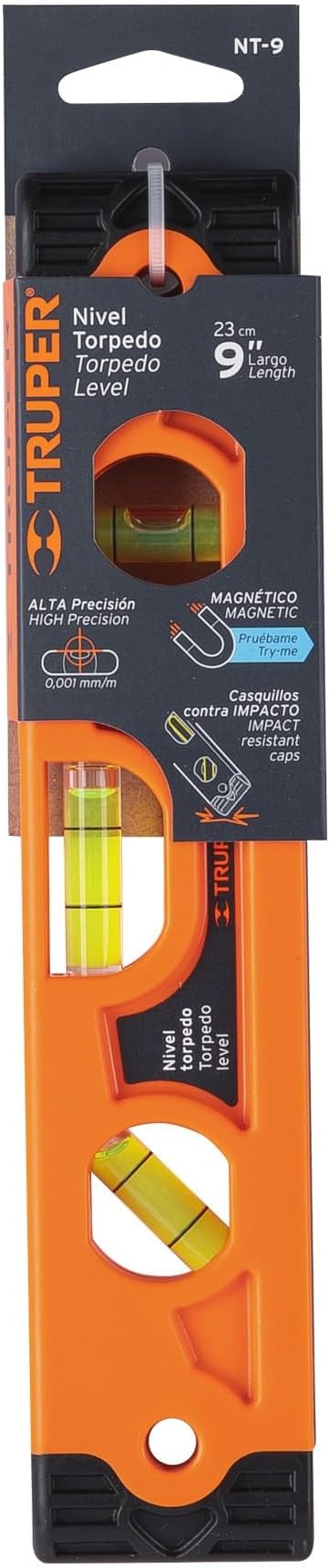 Cuerpo magnético para facilitar el trabajo en superficies metálicas. Gotas resistentes a la abrasión y al impacto. Fácil lectura desde ángulos 0°, 45° y 90°. Puntas recubiertas de TPE contra impacto. Ventana de lectura superior.