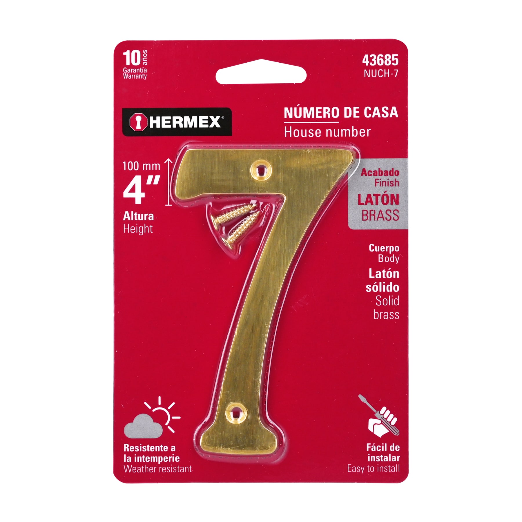 Imagen de NUMERO 7 DE LATON SOLIDO DE 4" HERMEX