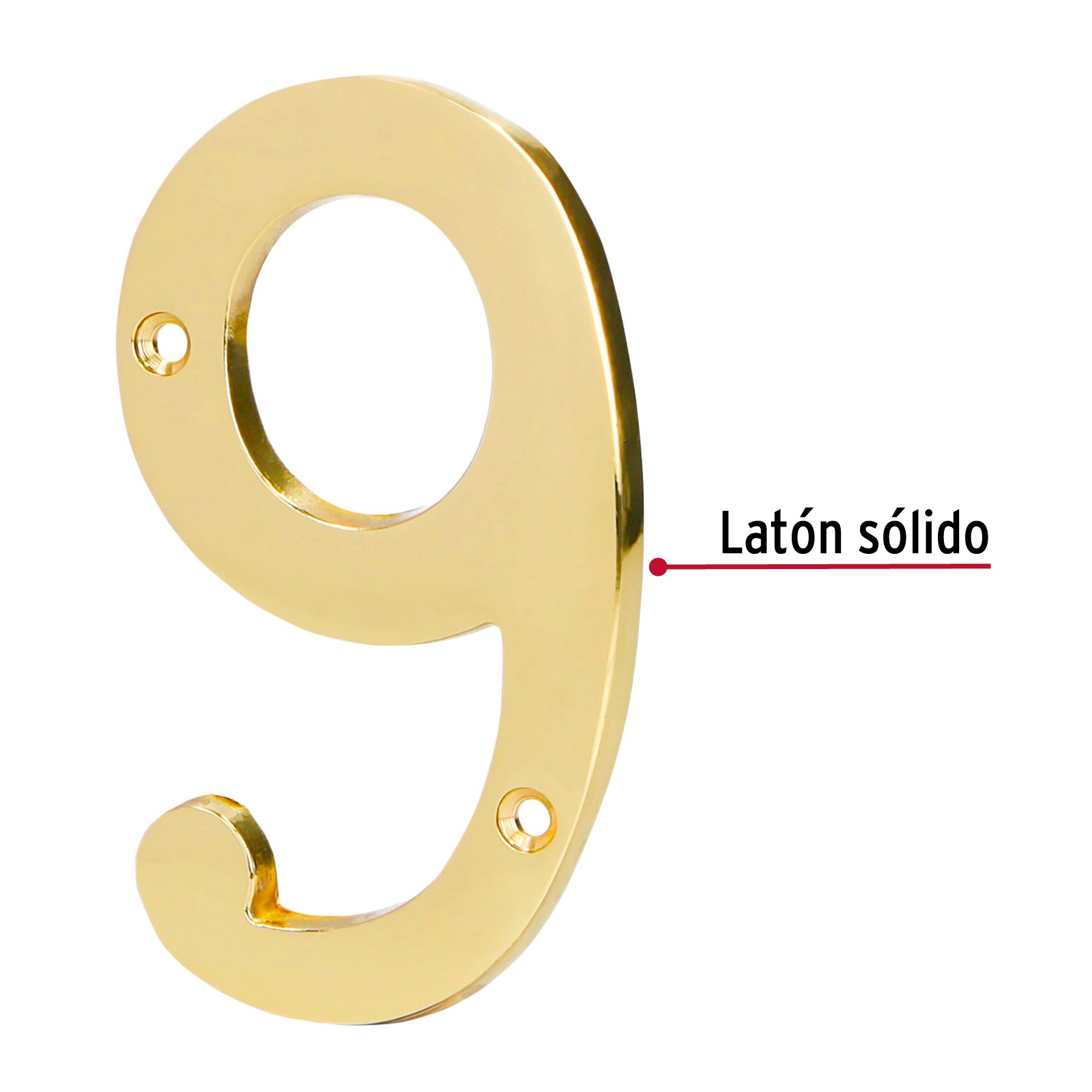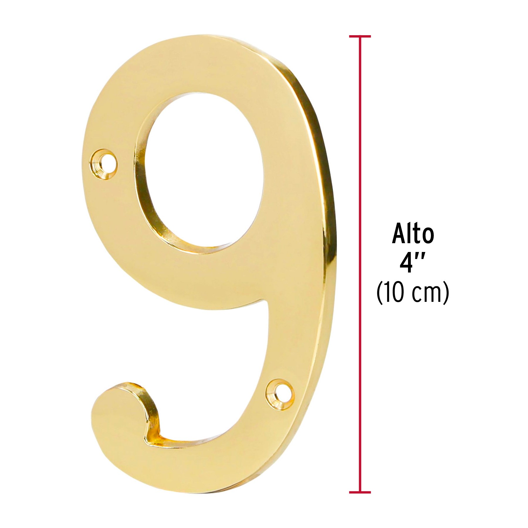 Imagen de NUMERO 9 DE LATON SOLIDO DE 4" HERMEX