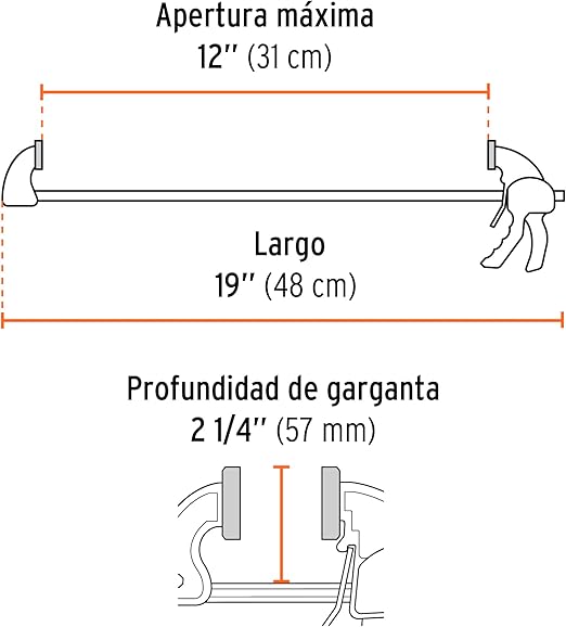 DescripciónCuerpo de nylon y barra de acero. Profundidad de garganta 2 1/4". Apertura máxima de 12". Almohadillas de silicón removibles que evitan el maltrato de la pieza de trabajo. Palanca de liberación rápida.Comentarios0 Cuerpo de nylon y barra de acero. Profundidad de garganta 2 1/4". Apertura máxima de 12". Almohadillas de silicón removibles que evitan el maltrato de la pieza de trabajo. Palanca de liberación rápida. Escribe una reseña No hay comentarios aún