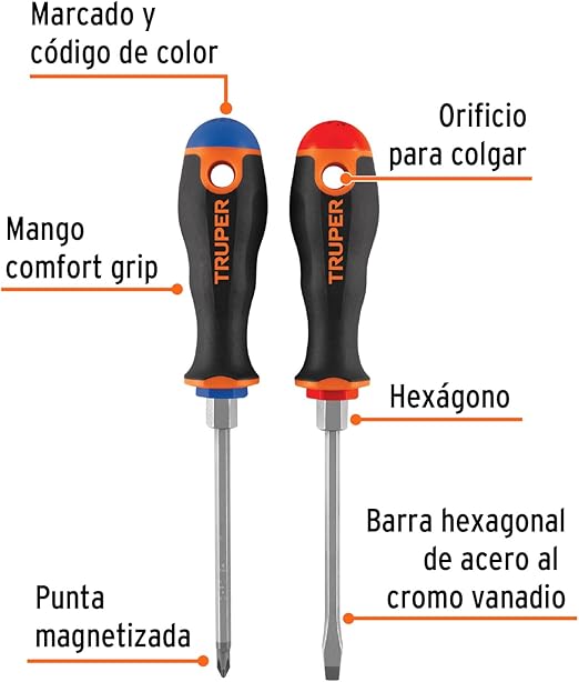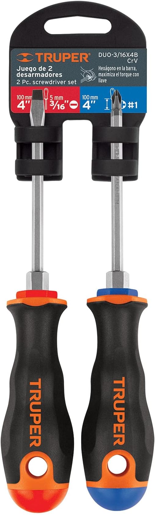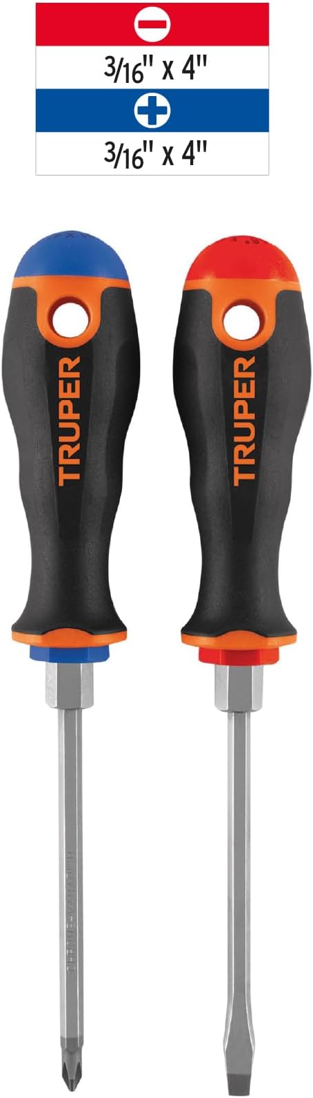 DUO DE DESARMADORES DE 3/16" X 4" CON MANGO DE AGARRE CONFORTABLE TRUPER