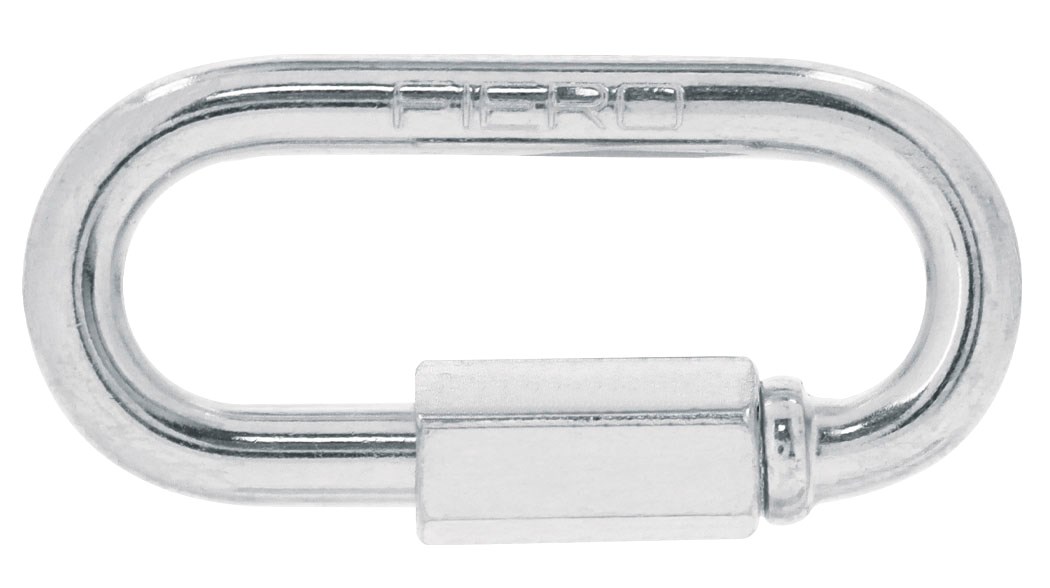 Fabricado en acero al carbono, acabado galvanizado. Resistente a la corrosión. Tornillo de bloqueo roscado. Ideales para arrastre, sujeción y anclaje. Para conexión rápida a cadenas, cables y accesorios.